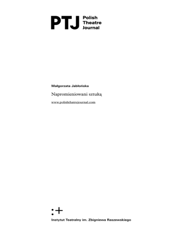 Małgorzata Jabłońska Napromieniowani sztuką www.polishthatrejournal.com Instytut Teatralny im. Zbigniewa Raszewskiego POLISH THEATRE JOURNAL 02/2016 01 Małgorzata Jabłońska Napromieniowani sztuką W latach 2011–2012 zespół Teatru Chorea zrealizował przełomowe w swojej biografii przedsięwzięcie Oratorium Dance Project1. Inspiracją dla tego projektu był film Rhythm Is It2 przedstawiający działalność dyrygenta Filharmoników Berlińskich Sir Simona Rattle i założyciela fundacji Dance United choreografa Roystona Maldooma, którzy podjęli się zaangażowania dwustu pięćdziesięciu młodych ludzi pochodzących z berlińskich blokowisk w wykonanie choreografii do Święta wiosny Igora Strawińskiego. Doświadczenie to, dla wielu z tych młodych ludzi pierwszy kontakt ze sztuką tańca i sztuką sceniczną w ogóle, uruchomiło proces przemiany światopoglądu, samooceny, nastawienia do społeczeństwa. Teatr Chorea podjął się podobnego wyzwania. Stuosobowa grupa uczestników pod przewodnictwem choreografa Roberta M. Haydena, grupy Earthfall Dance Limited i Teatru Chorea, z udziałem orkiestry i chóru Filharmonii Łódzkiej, stworzyła niepowtarzalne widowisko taneczno-muzyczne. Na potrzeby projektu powstał utwór Oratorium Antyk/ Trans/Orchestra, bazujący na aranżacjach zabytków muzycznych antycznej Grecji, skomponowany przez Tomasza Krzyżanowskiego i Macieja Maciaszka, członków Teatru Chorea. Projekt miał jednak przede wszystkim charakter edukacyjny i zaadresowany był do dzieci, młodzieży oraz seniorów z Łodzi i okolic, czyli z uznawanego za jeden z biedniejszych w Polsce regionu postindustrialnego, który mocno ucierpiał w wyniku redukcji przemysłu włókienniczego. Pośród uczestników znalazły się więc osoby ze środowisk defaworyzowanych, mające ograniczony dostęp do uczestnictwa w kulturze. Realizacja Oratorium Dance Project wymagała od artystów ryzykownego wejścia „w miasto”, wielomiesięcznego zaangażowania w warsztaty i relacje z ich uczestnikami, co okazało się testem dojrzałości, przed jakim dotąd zespół nie stanął. Przedsięwzięcie to i jego wyniki wyznaczyły Chorei nową drogę rozwoju i nową miarę sukcesu i porażki. Egzystencjalne i społeczne oddziaływanie stało się dla zespołu fundamentalnym sposobem walidacji sztuki, którą chcą tworzyć i propagować. Działalność teatru w kolejnych latach była w zasadzie konsekwencją doświadczeń towarzyszących produkcji Oratorium. Teatr Chorea powstał w 2004 roku z połączenia dwóch grup realizujących projekty badawczo-edukacyjne, prowadzonych przez aktorów i aktorki Ośrodka Praktyk Teatralnych „Gardzienice”. Pierwszą z nich była grupa Tańce Labiryntu pracująca nad rekonstrukcją tańców 1 Pokaz premierowy Oratorium Dance Project odbył się 8–9 grudnia 2011 roku. Kolejny pokaz – 22 czerwca 2015 roku. 2 http://www.rhythmisit.com, dostęp: 31 czerwca 2016. POLISH THEATRE JOURNAL 02/2016 02 Małgorzata Jabłońska / Napromieniowani sztuką antycznej Grecji na podstawie malarstwa wazowego, prowadzona przez Dorotę Porowską i Elżbietę Rojek; drugą – Orkiestra Antyczna rekonstruująca muzykę antycznej Grecji prowadzona przez Tomasza Rodowicza. Zespół wyrósł więc z dość hermetycznego doświadczenia teatralnej pracy laboratoryjnej skupionej na treningu aktorskim i poszukiwaniu wysublimowanych artystycznie form wyrazu. Taki też charakter miały pierwsze spektakle Chorei, pielęgnujące tradycje laboratoryjnej pracy zespołowej. Wyraźną zmianę w sposobie działania i formule przedstawień przyniosła współpraca z walijską grupą Earthfall oraz świadoma i zamierzona zmiana miejsca „zamieszkania”. Z położonej we wschodniej Polsce wsi zespół Chorei w 2007 roku przeniósł się do szczególnego miasta, jakim na mapie Polski jest Łódź. Niegdyś było to jedno z najbogatszych miast przemysłowych. Dziś, posiadająca bogate tradycje związane z polską szkołą filmu i dizajnu, Łódź wciąż jeszcze odbudowuje się z ruiny, w którą popadała w ciągu kilku dekad po II wojnie światowej z powodu upadku przemysłu włókienniczego, będącego jej głównym potencjałem rozwojowym. Postindustrialny społeczny i urbanistyczny charakter Łodzi oraz społeczno-polityczne zaangażowanie Earthfall stały się nowym bodźcem w rozwoju Chorei, która zaczęła tworzyć współczesne, zakotwiczone w teraźniejszości spektakle, nie rezygnując jednak z formacyjnego doświadczenia, jakim była dla członków zespołu praca nad starogreckim materiałem, ale odnajdując w zderzeniu tych dwóch obszarów własny artystyczny język. Pierwsze trzy lata pobytu w Łodzi były dla Chorei czasem wprowadzania zespołu w środowisko artystyczne miasta. Zachodzące wówczas przemiany odzwierciedla tematyka kolejnych festiwali organizowanych przez Teatr Chorea co dwa lata. Festiwal Retro/Per/ Spektywy: CHOREA 2010 prezentował dokonania zespołu, skupiając się na jego dotychczasowej działalności. Natomiast Retro/Per/Spektywy: Łódź 2012 zwracał się w stronę miasta – zgłębiał historię Łodzi, wielokulturową polsko-żydowsko-rosyjsko-niemiecką przeszłość jej mieszkańców, zwracał też uwagę na międzynarodowe projekty realizowane przez zespół. Trzecia edycja festiwalu Retro/Per/Spektywy: 2014 odbywała się pod hasłem „Sztuka promieniuje” i była, jak zapowiadał w tekście programowym dyrektor festiwalu Tomasz Rodowicz „otwarciem stałej perspektywy dla teatru”3, a w praktyce prezentacją projektów, które pojawiły się jako wynik oddziaływania pracy wykonanej przy realizacji Oratorium Dance Project. Ja sama byłam członkiem grupy Tańców Labiryntu i weszłam w skład grupy założycielskiej Chorei. Praktykowałam trening teatru i jako badacz śledzę poczynania Chorei od początku jej istnienia. Wielokrotnie miałam okazję obserwować warsztaty, uczestniczyć w nich i współpracować z członkami zespo