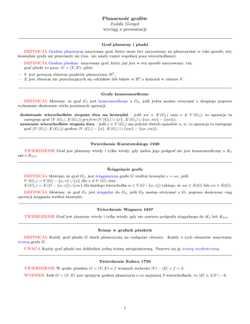 zastępuje graf (V (G1 ) , E (G1 )) graf em (V (G1 ) ∪ {x} , E (G1 ) ∪ {ux, xw} − {uw});