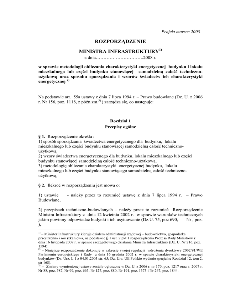 mieszkalnego lub części budynku stanowiącej samodzielną całość technicznouŜytkową oraz sposobu sporządzania i wzorów świadectw ich charakterystyki