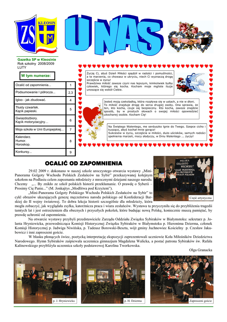 29.02 2009 r. dokonano w naszej szkole uroczystego otwarcia wystawy „MiniPanorama Golgoty Wschodu Polskich Zesłańców na Sybir” przekazywanej kolejnym