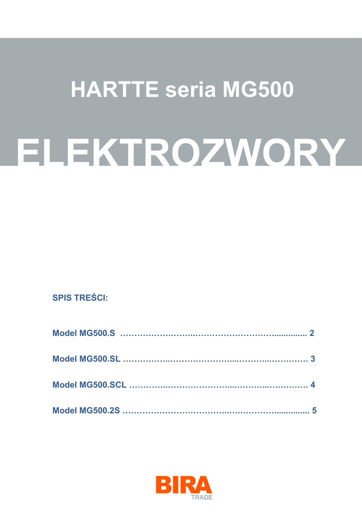 HARTTE seria MG500 ELEKTROZWORY SPIS TREŚCI: Model MG500.S ……………….……..………………………............... 2 Model MG500.SL ……………..…………………....………...…………. 3 Model MG500.SCL …………..…………………....………...….………. 4 Model MG500.2S ………………………………..….…………............... 5 model MG500.S Elektrozwory HARTTE serii MG500 są stosowane do systemów kontroli. Wszystkie elektrozwory marki HARTTE mają wbudowane warystory oraz są odporne na korozję. Ze względu na siłę przyciągania seria MG500 jest zalecana do systemów o podwyższonym poziomie bezpieczeństwa. Charakterystyka: typ pracy NO wymiary 268x73x40,8mm siła trzymania – min. 5300 N (530 kg) do montażu nawierzchniowego brak magnetyzmu szczątkowego wbudowany warystor odporny na korozję Dostępna wersja: 12/24V DC – zasilanie prądem stałym (DC) Siła przyciągania (N) Zasilanie (V) Pobór prądu (mA) Wymiary (mm) Waga (kg) Monitoring zamknięcia Monitoring drzwi Timer Montaż MG500.S 5300 12/24VDC 500/250 268x73x40,8 4,0 nie nie nie nawierzchniowy BIRA TRADE Tomasz Bira Dębowa 4, 05816 Michałowice www.bira.pl tel. +48 22 723 9017 Strona 2 KATEGORIA ELEKTROZWORY Elektrozwora HARTTE seria MG500 model MG500.SL Elektrozwory HARTTE serii MG500 są stosowane do systemów kontroli. Wszystkie elektrozwory marki HARTTE mają wbudowane warystory oraz są odporne na korozję. Ze względu na siłę przyciągania seria MG500 jest zalecana do systemów o podwyższonym poziomie bezpieczeństwa. Charakterystyka: typ pracy NO wymiary 268x73x40,8mm siła trzymania – min. 5300 N (530 kg) do montażu nawierzchniowego brak magnetyzmu szczątkowego wbudowany warystor odporny na korozję Dostępna wersja: 12/24V DC – zasilanie prądem stałym (DC) Siła przyciągania (N) Zasilanie (V) Pobór prądu (mA) Wymiary (mm) Waga (kg) Monitoring zamknięcia Monitoring drzwi Timer Montaż MG500.SL 5300 12/24VDC 500/250 268x73x40,8 4,0 tak (LED) nie nie nawierzchniowy BIRA TRADE Tomasz Bira Dębowa 4, 05816 Michałowice www.bira.pl tel. +48 22 723 9017 Strona 3 KATEGORIA ELEKTROZWORY Elektrozwora HARTTE seria MG500 model MG500.SCL Elektrozwory HARTTE serii MG500 są stosowane do systemów kontroli. Wszystkie elektrozwory marki HARTTE mają wbudowane warystory oraz są odporne na korozję. Ze względu na siłę przyciągania seria MG500 jest zalecana do systemów o podwyższonym poziomie bezpieczeństwa. Charakterystyka: typ pracy NO wymiary 268x73x40,8mm siła trzymania – min. 5300 N (530 kg) do montażu nawierzchniowego brak magnetyzmu szczątkowego wbudowany warystor odporny na korozję Dostępna wersja: 12/24V DC – zasilanie prądem stałym (DC) Siła przyciągania (N) Zasilanie (V) Pobór prądu (mA) Wymiary (mm) Waga (kg) Monitoring zamknięcia Monitoring drzwi Timer Montaż MG500.SCL 5300 12/24VDC 500/250 268x73x40,8 4,0 tak (LED) tak (chip) nie nawierzchniowy BIRA TRADE Tomasz Bira Dębowa 4, 05816 Michałowice www.bira.pl tel. +48 22 723 9017 Strona 4 KATEGORIA ELEKTROZWORY Elektrozwora HARTTE seria MG500 model MG500.2S Elektrozwory HARTTE serii MG500 są stosowane do systemów kontroli. Wszystkie elektrozwory marki HARTTE mają wbudowane warystory oraz są odporne na korozję. Ze względu na siłę przyciągania seria MG500 jest zalecana do systemów o podwyższonym poziomie bezpieczeństwa. Charakterystyka: typ pracy NO wymiary 536x73x40,8mm siła przyciągania – min. 2x5300 N (2x530 kg) do montażu nawierzchniowego brak magnetyzmu szczątkowego wbudowany warystor odporny na korozję Dostępna wersja: ELEKTROZWORY Elektrozwora HARTTE seria MG500 12/24V DC – zasilanie prądem stałym (DC) Siła przyciągania (N) Zasilanie (V) Pobór prądu (mA) Wymiary (mm) Waga (kg) Monitoring zamknięcia Monitoring drzwi Timer Montaż MG500.2S 2x5300 12/24VDC 2x500/250 536x73x40,8 9,0 nie nie nie nawierzchniowy BIRA TRADE Tomasz Bira Dębowa 4, 05816 Michałowice www.bira.pl tel. +48 22 723 9017 Strona 5 KATEGORIA
