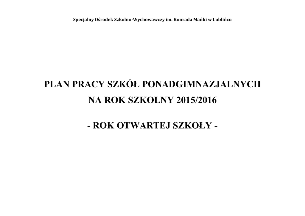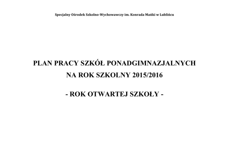 PLAN PRACY SZKÓŁ PONADGIMNAZJALNYCH NA ROK