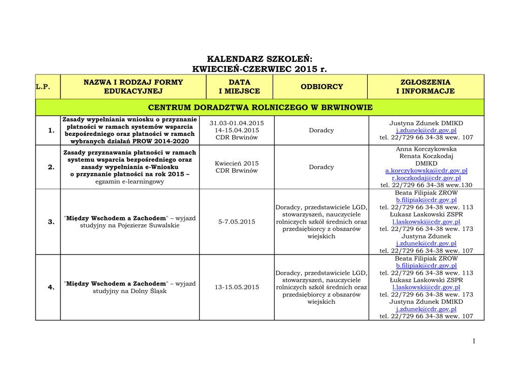 KALENDARZ SZKOLEŃ - Centrum Doradztwa Rolniczego w
