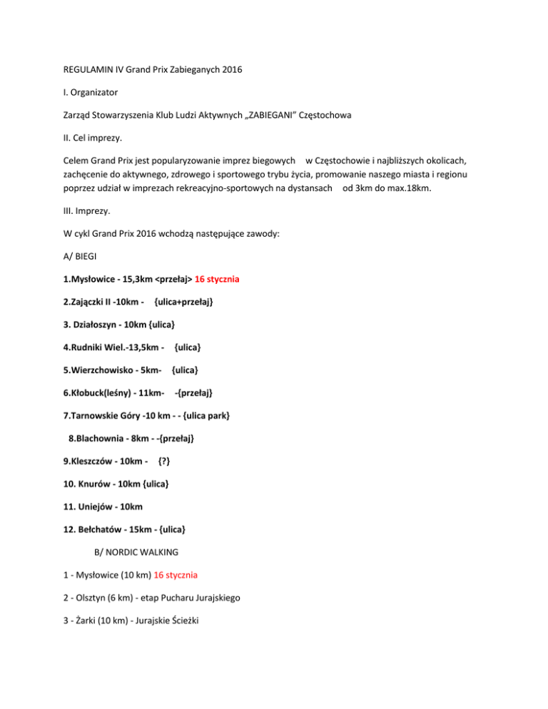 Regulamin Grand Prix Zabieganych 2016