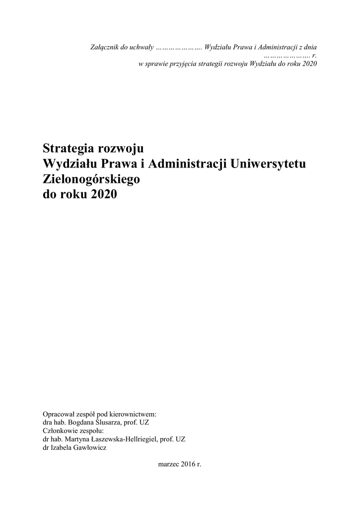 Strategia rozwoju Wydziału - Wydział Prawa i Administracji