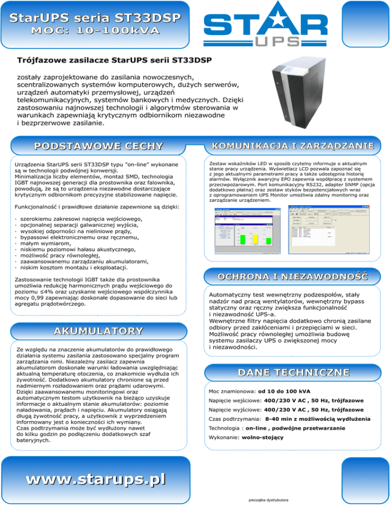 StarUPS seria ST33DSP SPECYFIKACJA TECHNICZNA MOC: 10