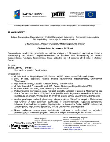 II KOMUNIKAT I Seminarium „Wespół w zespół z Matematyką bez