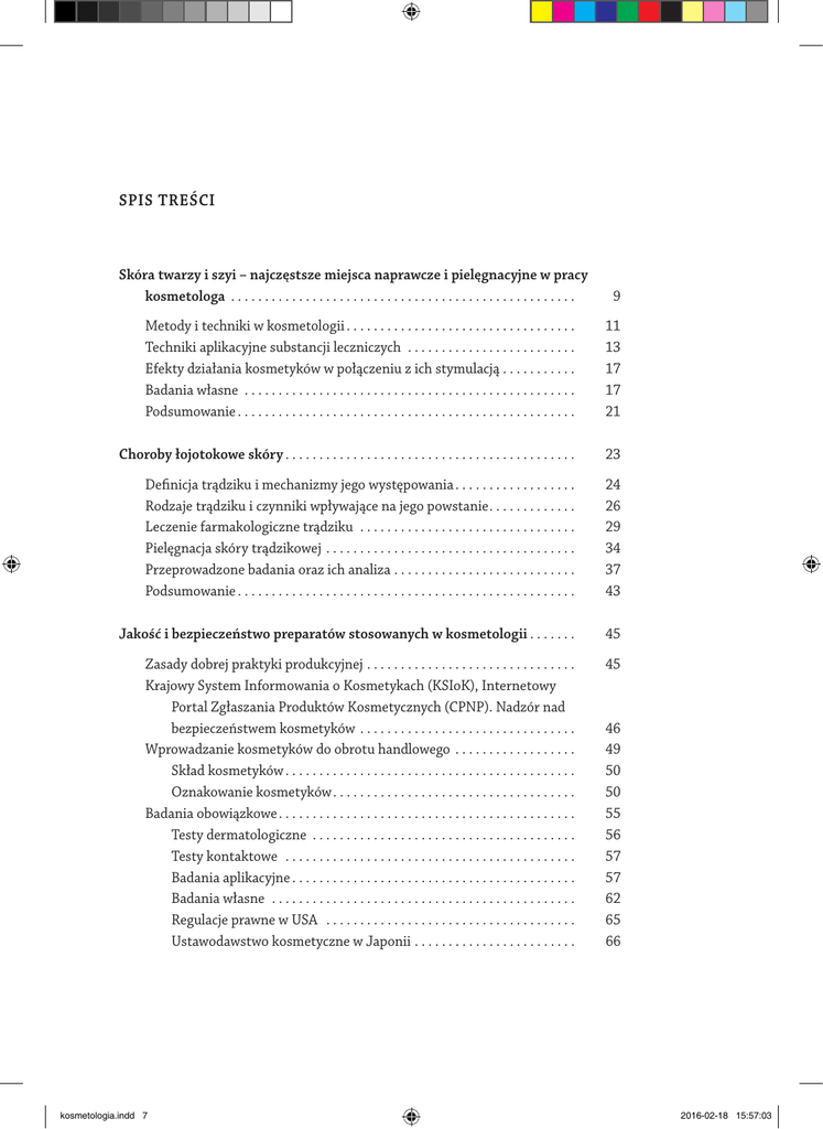 Spis treści Skóra twarzy i szyi – najczęstsze miejsca naprawcze i pielęgnacyjne w pracy kosmetologa . . . . . . . . . . . . . . . . . . . . . . . . . . . . . . . . . . . . . . . . . . . . . . . . . . . 9 Metody i techniki w kosmetologii . . . . . . . . . . . . . . . . . . . . . . . . . . . . . . . . . 11 Techniki aplikacyjne substancji leczniczych . . . . . . . . . . . . . . . . . . . . . . . . . 13 Efekty działania kosmetyków w połączeniu z ich stymulacją . . . . . . . . . . . 17 Badania własne . . . . . . . . . . . . . . . . . . . . . . . . . . . . . . . . . . . . . . . . . . . . . . . . . 17 Podsumowanie . . . . . . . . . . . . . . . . . . . . . . . . . . . . . . . . . . . . . . . . . . . . . . . . . 21 Choroby łojotokowe skóry . . . . . . . . . . . . . . . . . . . . . . . . . . . . . . . . . . . . . . . . . . 23 Definicja trądziku i mechanizmy jego występowania . . . . . . . . . . . . . . . . . 24 Rodzaje trądziku i czynniki wpływające na jego powstanie . . . . . . . . . . . . 26 Leczenie farmakologiczne trądziku . . . . . . . . . . . . . . . . . . . . . . . . . . . . . . . . 29 Pielęgnacja skóry trądzikowej . . . . . . . . . . . . . . . . . . . . . . . . . . . . . . . . . . . . . 34 Przeprowadzone badania oraz ich analiza . . . . . . . . . . . . . . . . . . . . . . . . . . . 37 Podsumowanie . . . . . . . . . . . . . . . . . . . . . . . . . . . . . . . . . . . . . . . . . . . . . . . . . 43 Jakość i bezpieczeństwo preparatów stosowanych w kosmetologii . . . . . . 45 Zasady dobrej praktyki produkcyjnej . . . . . . . . . . . . . . . . . . . . . . . . . . . . . . 45 Krajowy System Informowania o Kosmetykach (KSIoK), Internetowy Portal Zgłaszania Produktów Kosmetycznych (CPNP). Nadzór nad bezpieczeństwem kosmetyków . . . . . . . . . . . . . . . . . . . . . . . . . . . . . . . . 46 Wprowadzanie kosmetyków do obrotu handlowego . . . . . . . . . . . . . . . . . . 49 Skład kosmetyków . . . . . . . . . . . . . . . . . . . . . . . . . . . . . . . . . . . . . . . . . . 50 Oznakowanie kosmetyków . . . . . . . . . . . . . . . . . . . . . . . . . . . . . . . . . . . 50 Badania obowiązkowe . . . . . . . . . . . . . . . . . . . . . . . . . . . . . . . . . . . . . . . . . . . 55 Testy dermatologiczne . . . . . . . . . . . . . . . . . . . . . . . . . . . . . . . . . . . . . . . 56 Testy kontaktowe . . . . . . . . . . . . . . . . . . . . . . . . . . . . . . . . . . . . . . . . . . . 57 Badania aplikacyjne . . . . . . . . . . . . . . . . . . . . . . . . . . . . . . . . . . . . . . . . . 57 Badania własne . . . . . . . . . . . . . . . . . . . . . . . . . . . . . . . . . . . . . . . . . . . . . 62 Regulacje prawne w USA . . . . . . . . . . . . . . . . . . . . . . . . . . . . . . . . . . . . . 65 Ustawodawstwo kosmetyczne w Japonii . . . . . . . . . . . . . . . . . . . . . . . . 66 kosmetologia.indd 7 2016-02-18 15:57:03 8 Konserwanty w produktach kosmetycznych . . . . . . . . . . . . . . . . . . . . . . . . . . . 69 Pochodne kwasów organicznych . . . . . . . . . . . . . . . . . . . . . . . . . . . . . . . . . . . 75 Aldehydy . . . . . . . . . . . . . . . . . . . . . . . . . . . . . . . . . . . . . . . . . . . . . . . . . . . . . . 77 Alkohole . . . . . . . . . . . . . . . . . . . . . . . . . . . . . . . . . . . . . . . . . . . . . . . . . . . . . . . 78 Fenole i jego pochodne . . . . . . . . . . . . . . . . . . . . . . . . . . . . . . . . . . . . . . . . . . . 79 Sole amoniowe . . . . . . . . . . . . . . . . . . . . . . . . . . . . . . . . . . . . . . . . . . . . . . . . . 81 Związki rtęci . . . . . . . . . . . . . . . . . . . . . . . . . . . . . . . . . . . . . . . . . . . . . . . . . . . 81 Związki srebra . . . . . . . . . . . . . . . . . . . . . . . . . . . . . . . . . . . . . . . . . . . . . . . . . . 82 Pochodne guanidyny . . . . . . . . . . . . . . . . . . . . . . . . . . . . . . . . . . . . . . . . . . . . 82 Związki organiczne . . . . . . . . . . . . . . . . . . . . . . . . . . . . . . . . . . . . . . . . . . . . . . 83 Związki heterocykliczne . . . . . . . . . . . . . . . . . . . . . . . . . . . . . . . . . . . . . . . . . 84 Najczęściej stosowane konserwanty w kosmetykach – parabeny . . . . . . . 84 Zalety i ograniczenia środków konserwujących . . . . . . . . . . . . . . . . . . . . . 88 Metody badań skuteczności działania środków konserwujących . . . . . . . 90 Konserwacja kosmetyków naturalnych . . . . . . . . . . . . . . . . . . . . . . . . . . . . . 92 Konserwanty nowej generacji . . . . . . . . . . . . . . . . . . . . . . . . . . . . . . . . . . . . . 94 Co każdy kosmetolog wiedzieć powinien na temat promieniowania słonecznego . . . . . . . . . . . . . . . . . . . . . . . . . . . . . . . . . . . . . . . . . . . . . . . . . . . 97 Charakterystyka promieni UVA . . . . . . . . . . . . . . . . . . . . . . . . . . . . . . . . . . . 98 Charakterystyka promieni UVB . . . . . . . . . . . . . . . . . . . . . . . . . . . . . . . . . . . 99 Charakterystyka promieni UVC . . . . . . . . . . . . . . . . . . . . . . . . . . . . . . . . . . . 100 Odczyny posłoneczne . . . . . . . . . . . . . . . . . . . . . . . . . . . . . . . . . . . . . . . . . . . . 101 Odczyny wczesne . . . . . . . . . . . . . . . . . . . . . . . . . . . . . . . . . . . . . . . . . . . 102 Odczyny późne . . . . . . . . . . . . . . . . . . . . . . . . . . . . . . . . . . . . . . . . . . . . . 104 SPA & Wellness w Polsce i na świecie . . . . . . . . . . . . . . . . . . . . . . . . . . . . . . . . . 111 SPA na świecie – charakterystyka wybranych przykładów . . . . . . . . . . . . . 119 SPA w Polsce . . . . . . . . . . . . . . . . . . . . . . . . . . . . . . . . . . . . . . . . . . . . . . . . . . . 125 Zagrożenia zdrowotne w pracy kosmetologa . . . . . . . . . . . . . . . . . . . . . . . . . . 131 Źródła internetowe w dziedzinie kosmetologii . . . . . . . . . . . . . . . . . . . . . . . . 145 kosmetologia.indd 8 Piśmiennictwo . . . . . . . . . . . . . . . . . . . .