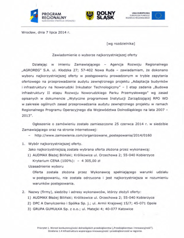 Zawiadomienie o wyborze najkorzystniejszej oferty