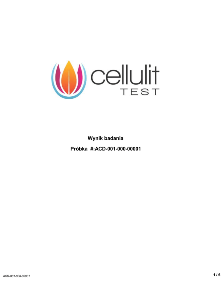 Wynik badania Próbka #:ACD00100000001 ACD-001-000-00001 1/6 Pacjent: ID Pacjenta: ACD00100000001 Data Urodzenia: Nazwa Laboratorium: Biogen Interlab ID Zestawu: ACD00100000001 Rodzaj Testu: Test genetyczny na obecność średniego i ciężkiego cellulitu Kierownik Laboratorium: Mgr inż. Marta Kaczmarek-Ryś Płeć: Lekarz Zamawiający: Materiał do badań: Wymaz z jamy ustnej Data Wykonania: DNA pacjenta w niniejszym badaniu zostało poddane analizie pod względem obecności wariantu genetycznego enzymu konwertazy angiotensyny I (ACE) związanego z ryzykiem wystąpienia umiarkowanego lub ciężkiego cellulitu czyli lipodystrofii kobiecej. ACD-001-000-00001 2/6 Wynik Laboratoryjny Pacjenta Lokalizacja w chromosomie 17q23.223.3 Gen Położenie Allel 1 Allel 2 ACE Intron 16 D I Podsumowanie Literatury Naukowej Wariant analizowany w ramach testu genetycznego „Cellulit”, jest istotnym wyznacznikiem aktywności genu ACE oraz produkcji angiotensyny II. Niedawne badanie przeprowadzone na grupie 400 kobiet wykazało powiązanie między wariantem genu ACE i cellulitem 2 stopnia (lub wyżej) w skali NürnbergeraMüllera. MIEJ NA UWADZE Pacjenci poddani testowi genetycznemu “Cellulit”, którzy otrzymają pozytywny wynik na obecność wariantu genu ACE, związanego z wysokim ryzykiem, posiadają znacząco podwyższone ryzyko wystąpienia umiarkowanego i zaawansowanego cellulitu. Jednak u około 10% osób, u których test „Cellulit” wykryje wysokie ryzyko wystąpienia cellulitu średniego i ciężkiego, może nigdy nie dojść do manifestacji tego schorzenia. Z tego względu, rezultat niniejszego testu genetycznego “Cellulit”, powinien być zawsze rozpatrywany przez pryzmat innych elementów. Znaczenie mogą mieć, na przykład czynniki rodzinne czy wyniki innych badań, które pomogą określić strategię leczenia pacjenta ACD-001-000-00001 3/6 Od umiarkowanego do zaawansowanego cellulitu Zarówno umiarkowany jak i ciężki cellulit (lipodystrofia kobieca) może być nieestetyczny, a tym samym krępujący dla kobiet, które na niego cierpią. Cellulit najczęściej pojawia się na udach, biodrach i pośladkach, z charakterystycznym wyglądem przypominającym skórkę pomarańczową. Schorzenie to może dotykać zarówno kobiety szczupłe jak i z nadwagą. Dowiedziono również, że jest przypadłością dziedziczną. Wiele osób uważa, że cellulit dotyka tylko otyłe kobiety. W rzeczywistości cellulit w jakiejkolwiek formie rozwija się średnio u 80% kobiet, niezależnie od ich wagi. Choć patologia cellulitu nie została jeszcze do końca wyjaśniona, uważa się, że cellulit wynika z dysfunkcji podskórnej tkanki tłuszczowej, znajdującej się najbliżej powierzchni skóry i podstawowej tkanki łącznej. Cellulit jest zatem chorobą skóry, a nie zaburzeniem, które przejawia się w wyniku nadmiaru tłuszczu (tkanki tłuszczowej). Swiadczą o tym minimalna skuteczność liposukcji i utraty masy ciała, które nie zmniejszą w żadnym stopniu zaawansowania cellulitu. Metody te zazwyczaj dotyczą głębszych warstw tkanki tłuszczowej, natomiast bardziej powierzchowna warstwa gdzie znajduje się cellulit ulega tylko nieznacznym zmiano ACD-001-000-00001 4/6 Przesiewowy test „Cellulit” na obecność średniego lub ciężkiego cellulitu Celem testu genetycznego „Cellulit” na obecność umiarkowanego i ciężkiego cellulitu, jest identyfikacja osób kwalifikujących się do wczesnych terapii, dlatego też czułość testu jest wysoka. Dodatkowo, wymagana jest znaczna swoistość testu, tak aby zwiększyć skuteczność przesiewu i zminimalizować liczbę osób, które niepotrzebnie poddadzą się leczeniu lub zmienią styl życia. Test genetyczny „Cellulit” określa wariant genetyczny w genie ACE kodującym enzym konwertazy angiotensyny I (ACE). Podczas, gdy patogeneza cellulitu nie jest jeszcze całkowicie zrozumiana (12), Emanuele i współpracownicy dokonał niedawno odkrycia silnego związku pomiędzy wariantem genu ACE i cellulitem w stadium umiarkowanym i ciężkim (3). Gen ACE odgrywa ważną rolę w układzie reninaangiotensyna, który reguluje ciśnienie krwi oraz równowagę wodną. ACE jest odpowiedzialny za konwersję angiotensyny I w silniej zwężającą naczynia angiotensynę II. Dodatkowo ACE przyczynia się do degradacji bradykininy, ważnego czynnika rozszerzającego naczynia. Związek pomiędzy wariantami ACE a umiarkowanym i ciężkim cellulitem otwiera drzwi do stworzenia potencjalnych terapeutyków opartych na ACE. Wariant analizowany w teście genetycznym „Cellulit”, jest główną determinantą poziomu i aktywności ACE. Test „Cellulit” bada obecność insercji (allel I) lub delecji (allel D) 287 par zasad w intronie 16 genu ACE. Każdy pacjent posiada dwie kopie genu ACE, które są zlokalizowane w chromosomie 17. W związku z tym może posiadać do dwóch kopi allelu typu D, które to warunkują znaczny wzrost poziomu enzymu ACE (4). Dodatkowo, wykazano, że angiotensyna II reguluje przepływ krwi w podskórnej tkance tłuszczowej, co może wyjaśniać związek z ryzykiem wystąpienia cellulitu (5). Pacjenci z choćby jedną kopią genu ACE z allelem D mają większe ryzyko rozwoju umiarkowanego lub ciężkiego cellulitu. Najsilniejszy niezależny związek genetyczny ze średnim i ciężkim cellulitem odkryto w enzymie konwertazy angiotensyny I (ACE) zlokalizowanym na chromosomie 17 (1). W szczególności wariant genu ACE, który jest ACD-001-000-00001 5/6 badany w teście „Cellulit” reguluje aktywność ACE oraz produkcję angiotensyny II. W przeszłości lekarze nie byli w stanie zapewnić pacjentom wnikliwej oceny ryzyka rozwoju średniego lub ciężkiego cellulitu. Obecnie test „Cellulit” umożliwia tę ocenę, w przypadku cellulitu 2 stopnia w skali Nurnbergera Mullera. Dzięki temu pacjenci z ryzykiem średniego do ciężkiego cellulitu mogą skorzystać z różnych terapii i/lub zmienić styl życia. Rysunek 1.Nürnberg