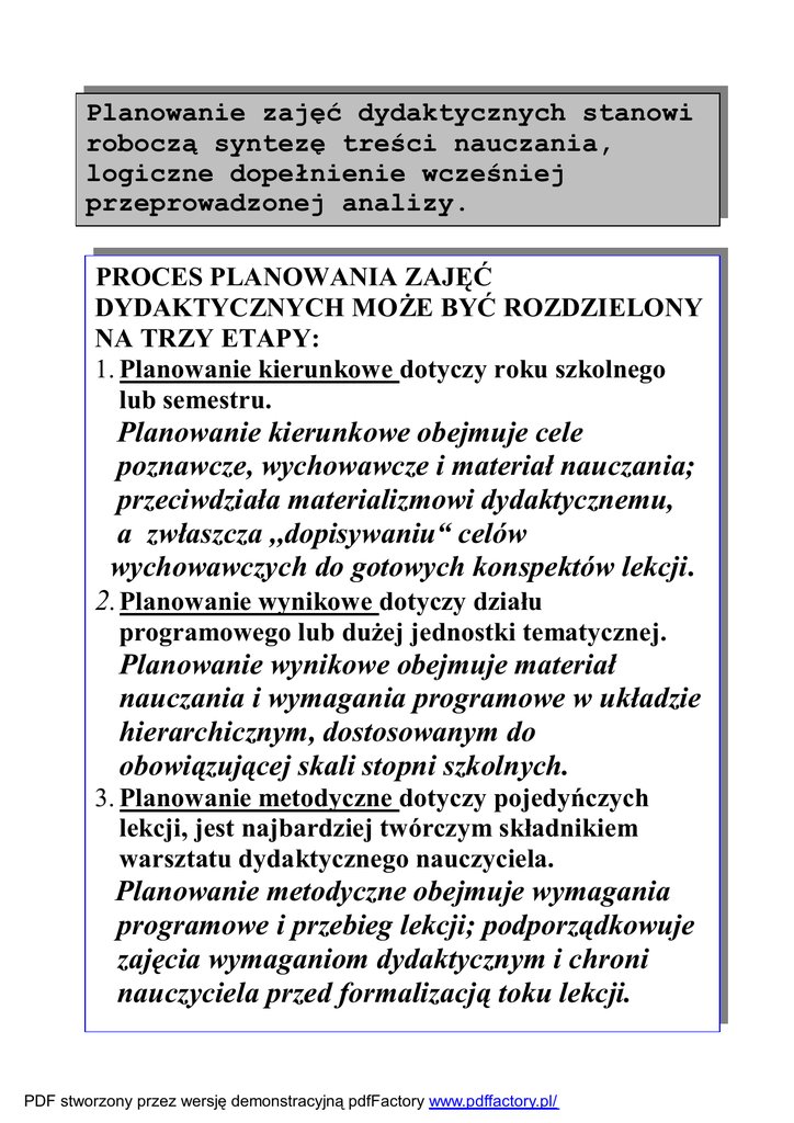 Planowanie kierunkowe obejmuje cele poznawcze, wychowawcze i