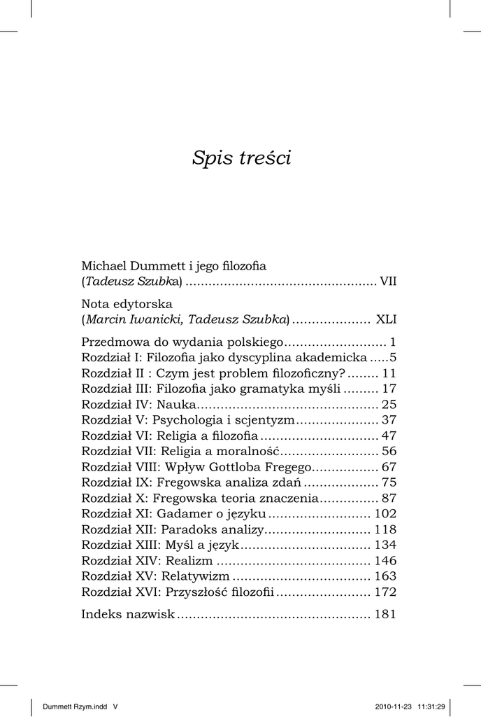 Spis treści Michael Dummett i jego filozofia (Tadeusz Szubka) .................................................. VII Nota edytorska (Marcin Iwanicki, Tadeusz Szubka) .................... XLI Przedmowa do wydania polskiego .......................... 1 Rozdział I: Filozofia jako dyscyplina akademicka .....5 Rozdział II : Czym jest problem filozoficzny? ........ 11 Rozdział III: Filozofia jako gramatyka myśli ......... 17 Rozdział IV: Nauka.............................................. 25 Rozdział V: Psychologia i scjentyzm ..................... 37 Rozdział VI: Religia a filozofia .............................. 47 Rozdział VII: Religia a moralność ......................... 56 Rozdział VIII: Wpływ Gottloba Fregego................. 67 Rozdział IX: Fregowska analiza zdań ................... 75 Rozdział X: Fregowska teoria znaczenia ............... 87 Rozdział XI: Gadamer o języku .......................... 102 Rozdział XII: Paradoks analizy........................... 118 Rozdział XIII: Myśl a język ................................. 134 Rozdział XIV: Realizm ....................................... 146 Rozdział XV: Relatywizm ................................... 163 Rozdział XVI: Przyszłość filozofii ........................ 172 Indeks nazwisk ................................................. 181 Dummett Rzym.indd V 2010-11-23 11:31:29 Michael Dummett i jego filozofia Bodaj najbardziej charakterystyczną cechą myśli filozoficznej XX wieku jest wyraźny rozłam na dwie tradycje: filozofię analityczną oraz filozofię, którą dosyć nieszczęśliwie przyjęło się określać mianem kontynentalnej, obejmującą takie kierunki, jak: fenomenologia, egzystencjalizm, hermeneutyka, dekonstrukcjonizm i wszystkie filozoficzne przejawy postmodernizmu. Wśród filozofów analitycznych drugiej połowy dwudziestego wieku szczególną pozycję zajmuje Michael Dummett, często uznawany za najwybitniejszego filozofa brytyjskiego kilku ostatnich dekad. Do jego niewątpliwych osiągnięć należą szczegółowe badania nad filozofią języka i matematyki Gottloba Fregego, najważniejszego prekursora tradycji analitycznej, oraz oryginalna koncepcja filozofii, w której proponuje się uczynić z filozofii języka, pojmowanej jako systematyczna teoria znaczenia, fundamentalną dyscyplinę filozoficzną, dostarczającą nowych narzędzi do rozwiązywania problemów innych działów filozofii, łącznie z metafizyką. Zanim jednak koncepcja ta zostanie krótko omówiona, warto zasygnalizować główne fakty z życia tego brytyj- Dummett Rzym.indd VII 2010-11-23 11:31:29 VIII TADEUSZ SZUBKA skiego myśliciela oraz jego najistotniejsze dokonania intelektualne1. 1. Życie i dzieło. Sir Michael Anthony Eardley Dummett urodził się 27 czerwca 1925 roku w Londynie. Pochodził z zamożnej rodziny, która zapewniła mu bardzo dobre wykształcenie w Winchester College, jednej z najstarszych i najbardziej cenionych szkół prywatnych w Wielkiej Brytanii. Chociaż zainspirowany lekturą popularnych książek J. Jeansa i A.S. Eddingtona zamierzał się specjalizować w naukach przyrodniczych, to ostatecznie wybrał historię. Szkołę tę ukończył w 1943 roku, uzyskując stypendium na dalsze studia historii w Christ Church, prestiżowym kolegium Uniwersytetu Oksfordzkiego. Edukacja ta została przerwana na kilka lat z powodu służby wojskowej. Dummetta skierowano wpierw do jednostki artylerii w Edynburgu. Nie został jednak ostatecznie wysłany na front, lecz zaproponowano mu naukę japońskiego i pracę w służbie wywiadowczej. Po odbyciu odpowiedniego przeszkolenia, wcielono go do jednostki w Indiach, znajdującej się w pobliżu Delhi, której oficjalna nazwa brzmiała „Radiotelegraficzne 1 Przedstawienie tych faktów i dokonań opiera się głównie na zwięzłej autobiografii intelektualnej Dummetta (Intellectual Autobiography, w: The Philosophy of Michael Dummett, ed. by R.E. Auxier, L.E. Hahn, Open Court, Chicago 2007, s. 1–32), skorygowanej i uzupełnionej danymi zaczerpniętymi z rozmaitych haseł biograficznych, wstępów do książek tego autora oraz wywiadów, a w szczególności: R. Fara, M. Salles, An Interview with Michael Dummett: From Analytical Philosophy to Voting Analysis and Beyond, „Social Choice and Welfare” 27(2006), s. 347–364. W części poświęconej metafilozofii wykorzystuję obszerne fragmenty mojej rozprawy pt. Najnowsze poglądy Michaela Dummetta. Próba interpretacji, w: Teoria znaczenia Michaela Dummetta i jej konsekwencje metafizyczne, pod red. U.M. Żegleń, Dom Wydawniczy DUET, Toruń 2006, s. 144–186), dopełniając je informacjami i cytatami zaczerpniętymi z publikacji Dummetta z ostatnich lat. Dummett Rzym.indd VIII 2010-11-23 11:31:29 MICHAEL DUMMETT I JEGO FILOZOFIA IX Centrum Eksperymentalne”, lecz jej prawdziwym celem było tłumaczenie tekstów japońskich, a w szczególności przechwyconych depesz wojskowych. Po kapitulacji Japonii „centrum” straciło częściowo swoją rację bytu i Dummett został przeniesiony do służby wojskowo-politycznej na Malajach. W tym okresie w jego życiu dokonały się dwie poważne zmiany, które miały istotny wpływ na jego późniejszą działalność. Po pierwsze, jeszcze w czasie szkolnym istotnie zmienił się stosunek Dummetta do religii. Początkowo, wraz z innymi kolegami ze szkolnej ławy, był ateistą i zwolennikiem czegoś, co określano wówczas mianem naukowego poglądu na świat. Z czasem zaczął się przychylać do panteizmu, a później do teizmu, typowego dla religii semickich. Ostatecznie wybrał najbliższe mu kulturowo chrześcijaństwo i w czasie służby wojskowej w Edynburgu został członkiem Kościoła katolickiego, uważając, że tylko ta wspólnota wyznaniowa może rościć sobie prawo do bycia instytucją założoną przez Jezusa Chrystusa, gdyż wszystkie inne Kościoły chrześcijańskie powstały w wyniku oderwania się od tej pierwotnej wspólnoty2. Po drugie, po