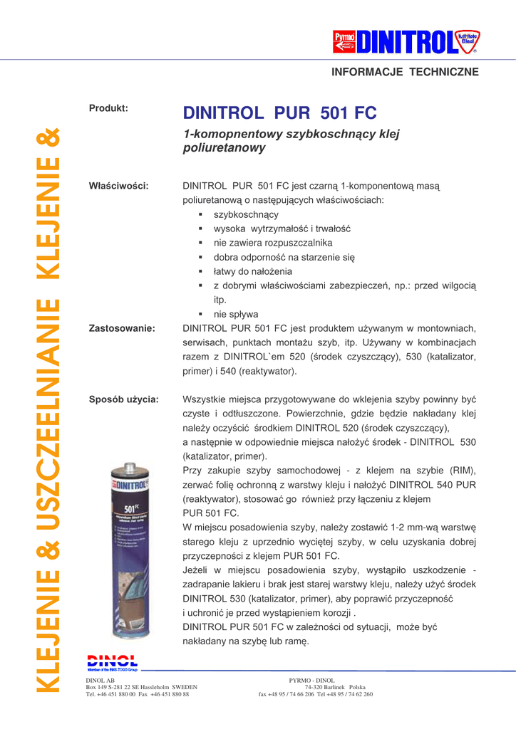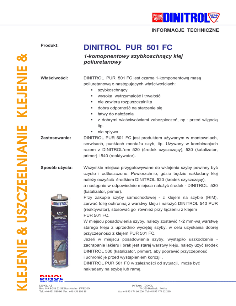Parametry techniczne produktu DINITROL 501 FC