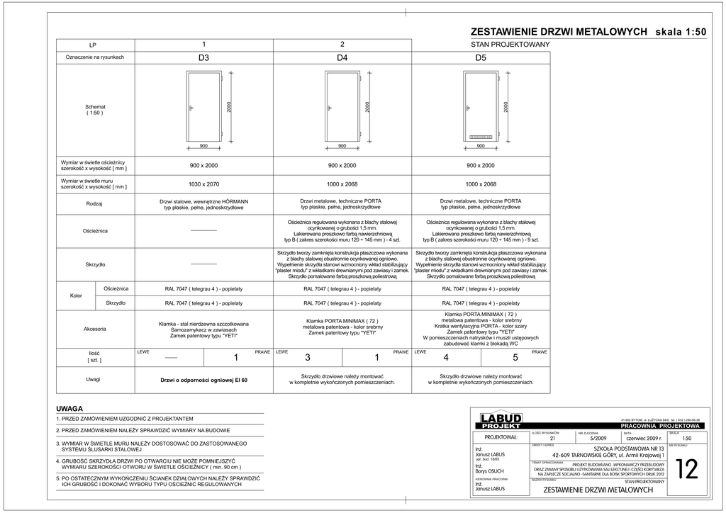 skala 1:50 ZESTAWIENIE DRZWI METALOWYCH