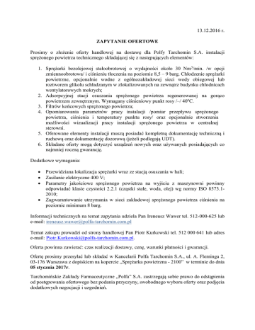 13.12.2016 r. ZAPYTANIE OFERTOWE Prosimy o złożenie oferty