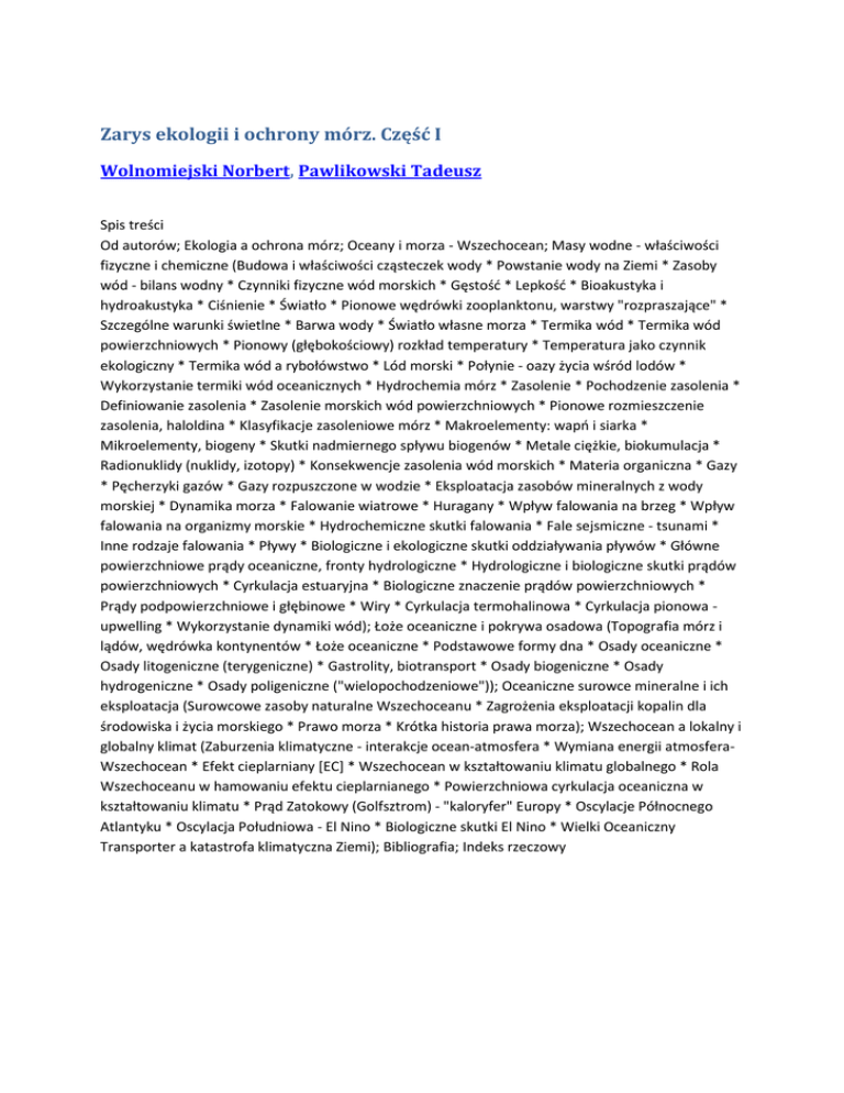 Od autorów; Ekologia a ochrona mórz; Oceany i morza - Wszechocean; Masy wodne - właściwości
