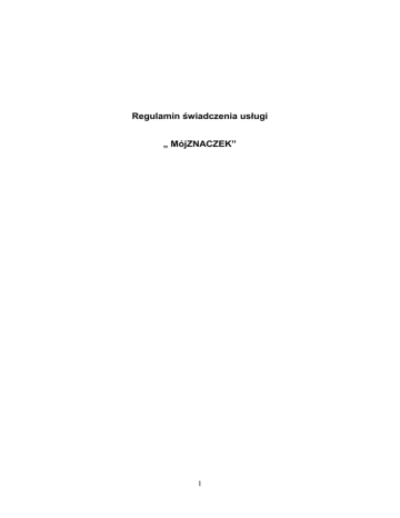 Regulamin świadczenia usługi „ MójZNACZEK” 1 §1 Postanowienia ogólne 1. Poczta Polska S.A. (z siedzibą w Warszawie, ul. Stawki 2, 00-940 Warszawa, wpisana do Krajowego Rejestru Sądowego prowadzonego przez Sąd Rejonowy dla m.st. Warszawy w Warszawie, Wydział XII Gospodarczy pod nr: 0000334972, NIP: 525-000-73-13, REGON: 010684960, kapitał zakładowy: 774.140.000 zł, w całości wpłacony) oferuje klientom odpłatne świadczenie usługi wykonania znaku opłaty pocztowej „MójZNACZEK”, dalej „usługa „MójZNACZEK” polegającej na nadruku na wzorcu znaku opłaty pocztowej przekazanego przez klienta projektu graficznego. 2. Regulamin określa warunki i zasady świadczenia usługi „MójZNACZEK”, a także zasady odpowiedzialności za niewykonanie i nienależyte wykonanie zleconej usługi. 3. Regulamin świadczenia usługi „MójZNACZEK ” dostępny jest w placówkach pocztowych oraz na stronie internetowej www.filatelistyka.poczta-polska.pl. §2 Określenia Użyte w niniejszym Regulaminie określenia oznaczają: 1) BMF – Biuro Marketingu i Filatelistyki - komórkę organizacyjną w Centrali Poczty Polskiej S.A. zajmującą się realizacją usługą „MójZNACZEK”, 2) BRDH – Biuro Rozwoju Działalności Handlowej – komórkę organizacyjną w Centrali Poczty Polskiej S.A. sprawującą nadzór operacyjny nad realizacją usługi „MójZNACZEK” przez SOZ, 3) Cennik usługi – Cennik świadczenia usługi „MójZNACZEK” wprowadzony wewnętrznym aktem prawnym Poczty Polskiej S.A., 4) klient – osoba prawna lub fizyczna, jednostka organizacyjna nieposiadająca osobowości prawnej, dostarczająca projekt graficzny oraz zlecająca realizację usługi na warunkach określonych w Regulaminie, 4a) konsument (klient indywidualny) – klient będący osobą fizyczną, zlecający Poczcie Polskiej S.A. usługę MójZNACZEK, w celu niezwiązanym bezpośrednio ze swoją działalnością gospodarczą lub zawodową, 5) MójZNACZEK – znak opłaty pocztowej, niebędący znaczkiem pocztowym, służący do potwierdzenia opłacenia usługi pocztowej świadczonej przez Pocztę Polską S.A., zawierający informacje umożliwiające identyfikację operatora pocztowego oraz informację o wysokości opłaty za usługę pocztową wyrażoną w formie cyfr arabskich lub liter alfabetu łacińskiego bądź poprzez odniesienie do masy i kategorii przesyłki pocztowej oraz nadrukowany, przekazany przez klienta, projekt graficzny spełniający warunki techniczne określone w § 4 Regulaminu i zgodny z przepisami prawa powszechnie obowiązującego, 6) opłata „z dołu” – uiszczanie opłaty za usługę „MójZNACZEK” po jej zrealizowaniu – forma płatności dostępna wyłącznie w przypadku jednorazowego zamówienia powyżej 100 arkuszy 2 wzorców znaków opłaty pocztowej złożonego przez klienta, z którym Pocztą Polską S.A. zawarła pisemną umowę o świadczenie innych usług pocztowych, 7) opłata „z góry” - uiszczanie opłaty za usługę „MójZNACZEK” przed rozpoczęciem jej realizacji – forma płatności dostępna dla wszystkich klientów , którzy złożyli inne zamówienie niż określone w § 5 ust. 3 , 8) personalizacja – nadrukowanie na wzorcu znaku opłaty pocztowej projektu graficznego przekazanego przez klienta, 9) placówka pocztowa – jednostka organizacyjna Poczty Polskiej S.A. o terenowym zasięgu działania(urząd pocztowy lub filia urzędu pocztowego) przyjmująca zamówienia na realizację usługi „MójZNACZEK”, doręczająca przesyłki zawierające produkt „MójZNACZEK” oraz wykonująca inne zadania określone właściwymi przepisami Poczty Polskiej S.A. 10) projekt graficzny – przekazany przez klienta projekt nadruku zawierający rysunki, zdjęcia, napisy bądź też inne treści (np. logotyp, znak towarowy). Projektem graficznym nie jest samo tło i grafika w postaci kropek, krzyżyków, mikro tekstu w jasnym kolorze imitującym tło wzorca znaku opłaty pocztowej, 11) Regulamin – Regulamin świadczenia usługi „MójZNACZEK”, 12) SOZ – Sekcja Obsługi Zamówień w Lublinie, ul. Wacława Moritza 2, 20-900 Lublin – wewnętrzna komórka organizacyjna Poczty Polskiej S.A., przyjmująca i realizująca zamówienia na usługę, 13) służby sprzedaży – pracownicy Biura Klienta Biznesowego i Instytucjonalnego - komórki organizacyjnej w Centrali Poczty Polskiej S.A. przyjmujący zamówienia na usługę „MójZNACZEK” od klientów nie będących konsumentami, 14) wzorzec znaku opłaty pocztowej – niezadrukowane perforowane pole, stanowiące część arkusza sprzedażnego, zawierające informację o wysokości opłaty za usługę pocztową oraz informację identyfikującą operatora pocztowego (napis Poczta Polska S.A.) i na których to znakach opłaty pocztowej zostanie nadrukowany projekt graficzny przekazany przez klienta, 14a) arkusz sprzedażny – forma sprzedaży znaków opłaty pocztowej zawierająca 9 wzorców znaku opłaty pocztowej przeznaczonych do nadrukowania na nich projektu graficznego przekazanego przez klienta 15) www.poczta-polska.pl – strona internetowa Poczty Polskiej S.A., która przekierowuje na stronę internetowego sklepu filatelistycznego Poczty Polskiej S.A., na której udostępniono aktywny formularz zamówienia na usługę „MójZNACZEK” za pomocą którego można składać zamówienia na usługę, 16) www.filatelistyka.poczta-polska.pl – strona internetowego sklepu filatelistycznego Poczty Polskiej S.A., na której udostępniono aktywny formularz zamówienia na usługę ”MójZNACZEK”, za pomocą którego można składać zamówienia na usługę. 3 §3 Składanie zamówień 1. Zamówienia na usługę „MójZNACZEK” można składać: 1) w placówkach pocztowych , 2) przesyłką listową na adres SOZ, 3) e-mailowo na adres [email protected], 4) przez Internet za pośrednictwem strony www.filatelistyka.poczta-polska.pl, 5) za pośrednictwem służb sprzedaży poprzez złożenie