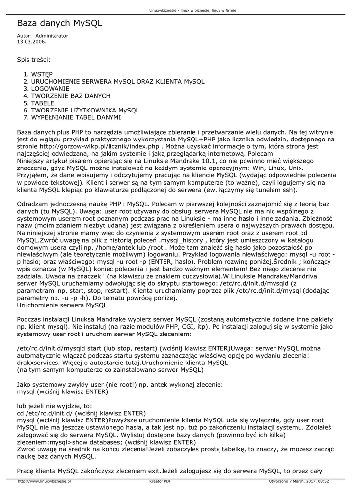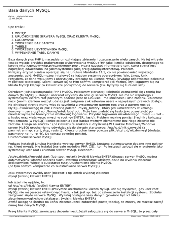 Baza danych MySQL - Linux w biznesie