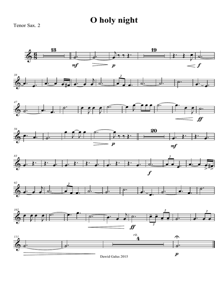 O holy night Tenor Sax. 2 38 47 2 83 92 102 111 2 Dawid Galus 2015 2 2 2 rit. 56 2