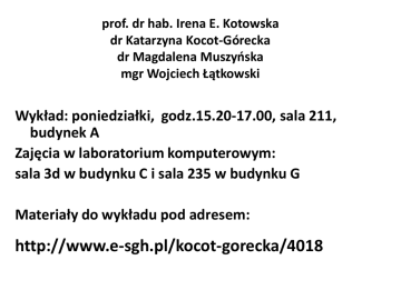 prof. dr hab. Irena E. Kotowska dr Katarzyna Kocot-Górecka dr Magdalena Muszyńska mgr Wojciech Łątkowski Wykład: poniedziałki, godz.15.20-17.00, sala 211, budynek A Zajęcia w laboratorium komputerowym: sala 3d w budynku C i sala 235 w budynku G Materiały do wykładu pod adresem: http://www.e-sgh.pl/kocot-gorecka/4018 Program zajęć z demografii (120910) Nr Data Tematyka wykładu 1. 29.09.14 2. 06.10.14 Wprowadzenie do problematyki badań demograficznych. Źródła informacji o zjawiskach ludnościowych i ich pomiar. Zasady budowy podstawowych współczynników demograficznych. Siatka Lexisa. Analiza procesu tworzenia, rozwoju i rozpadu rodziny. Przemiany rodziny w Europie 3. L 13.10.14 Obliczanie współczynników demograficznych. Standaryzacja współczynników demograficznych. 4. 20.10.14 5. L 27.10.14 Płodność – analiza, przemiany płodności. Wybrane teorie płodności. Zróżnicowanie płodności w Europie Tablice trwania życia – zasady budowy tablic, analiza podstawowych parametrów tablic 6. 03.11.14 Stan zdrowia ludności i umieralność, przegląd podstawowych zagadnień współczesnych 7. 17.11.14 Pierwsze i drugie przejście demograficzne 8. L 24.11.14 Współczynnik przyrostu naturalnego. Koncepcja ludności zastojowej i ustabilizowanej. Prawo Lotki 9. 01.12.14 Struktury demograficzne. Proces starzenia się ludności 10. 08.12.14 Metody prognozowania demograficznego. Podstawowe metody prognozowania ludności (metoda składnikowa, prognozy stochastyczne). 11. L 15.12.14 Prognozowanie ludności metodą składnikową 12. 22.12.14 Migracje zewnętrzne i wewnętrzne: pomiar, wybrane teorie migracji, prawidłowości współczesnych zmian 13. 12.01.15 Sytuacja demograficzna w świetle przewidywań stanu i struktur ludności - świat, Europa, Polska. Społeczno-ekonomiczne konsekwencje zmian struktur wieku ludności Literatura podstawowa: • J.Z.Holzer, Demografia, PWE, Warszawa 2003. • Kotowska I.E., J.Jóźwiak, 2012, Kotowska I.E., J.Jóźwiak, 2012, Nowa demografia Europy a rodzina, Roczniki Kolegium Analiz Ekonomicznych, Zeszyt 28/2012, 9-33. • J. Kurkiewicz (red.), 2010, Procesy demograficzne i metody ich analizy. Uniwersytet Ekonomiczny w Krakowie, Kraków. Literatura uzupełniająca:. • I.E.Kotowska, J.Jóźwiak, A.Matysiak, A.Baranowska, 2008, Poland: Fertility decline - a response to profound societal change and transformations in the labour market?, w: T.Frejka, T.Sobotka, J.M.Hoem, L.Toulemon (eds.), Childbearing Trends and Policies in Europe, Demographic Research, Vol. 19; Article 22: 795-854 • M.Okólski, A.Fihel, 2012, Demografia. Współczesne zjawiska i teorie, Wydawnictwo Naukowe Scholar, Warszawa. • Frejka T., Sobotka T., 2008, Overview Chapter 1: Fertility in Europe. Diverse, Delayed and below Replacement, in: Frejka T., Hoem J., Sobotka T., Toulemon L., Childbearing Trends and Policies in Europe, Demographic Research, Vol. 19: 15-46. • Sobotka T., Toulemon L., 2008, Overview Chapter 4: Changing Family and Partnership Behaviour: Common Trends and Persistent Diversity across Europe, in: Frejka T., Hoem J., Sobotka T., Toulemon L., Childbearing Trends and Policies in Europe. An Overview, Demographic Research, Vol. 19: 85-138. • European Commission, 2006, The Demographic Future of Europe – from Challenge to Opportunity, Communication from the Commission, Brussels, COM(2006) 571final. Elementy oceny końcowej: Zaliczenie przedmiotu: • Obecności na zajęciach w laboratoriach (można mieć jedną nieusprawiedliwioną nieobecności) Egzamin • Składa się z pytań otwartych, zadania z ćwiczeń i testu • Zakres egzaminu obejmuje treść wykładów, ćwiczeń i odpowiednie rozdziały z literatury obowiązkowej. • Możliwość podniesienia oceny z egzaminu o 0,5 stopnia za obecności na wykładach (można mieć jedną nieusprawiedliwioną nieobecności) • Możliwość podniesienia oceny z egzaminu o 0,5 stopnia za przygotowanie na ćwiczenia krótkiej prezentacji (w grupie 2 lub 3 osób) Demografia demos = lud, grapheia = opis nauka o prawidłowościach rozwoju ludności w konkretnych warunkach gospodarczych i społecznych badanego regionu opis procesu zmian stanu i struktury ludności, uwarunkowania tych zmian i ich konsekwencje WYKŁAD 1 (29.09.2014) 1. Proces reprodukcji ludności i jego składowe 2. Źródła danych 3. Podstawowe współczynniki demograficzne 4. Siatka Lexisa Ludność Polski w latach 1946-2013 38 533 tys. 2013: 38 496 tys. 23 336 tys. (60,5%) 2013: 23 274 tys. 15 197 tys. 2013: 15 222 tys. Podstawowe informacje o rozwoju demograficznym Polski do 2013 roku, GUS, materiał na konferencję prasową w dn.30.01.2014 Składowe dynamiki ludności • Płodność • Umieralność • Migracje stan ludności w momencie t = stan ludności w momencie t -1 + urodzenia w okresie (t-1, t) - zgony w okresie (t-1, t) + imigracje w okresie (t-1, t) - emigracje w okresie (t-1, t) Zmienne zasobów – np. liczba ludności, kobiet, nowożeńców, gospodarstw domowych, pomiar w ustalonym momencie czasu Zmienne strumieni – zdarzenia zachodzące w tych zbiorowościach (np. urodzenia, zgony), pomiar w ustalonym przedziale czasu Podstawowe informacje o rozwoju demograficznym Polski do 2013 roku, GUS, materiał na konferencję prasową w dn.30.01.2014 Podstawowe informacje o rozwoju demograficznym Polski do 2013 roku, GUS, materiał na konferencję prasową w dn.30.01.2014 Typy struktur wieku ludności (G.Sundbärg, 1894) przemiany struktur wieku w procesie przeobrażeń reprodukcji ludności, teorie przejścia demograficznego J.Z.Holzer, Demografia, 2003, s.134 Źródła informacji o ludności • powszechne spisy ludności • rejestracja bieżąca • regularne badania oparte na próbach reprezentatywnych • specjalne badania ankietowe Pomiar zmiennych demograficznych Zmienne zasobów Zmienne strumieni • Wielkości absolutne • Wielkości względne – ujawniają wzajemne relacje zasobów i strumieni: 1. Zasób do zasobu 2