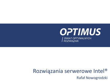 Rozwiązania serwerowe Intel® Rafał Nowogrodzki Agenda prezentacji ■ Marka Optimus ■ Urządzenia OPTIMUS ■ Serwery OPTIMUS dla małej i średniej firmy ■ Serwery OPTIMUS dla przedsiębiorstw i instytucji ■ Rozwiązania serwerowe OPTIMUS ■ Oferta na produkty serwerowe OPTIMUS ■ Marka obecna ponad 20 lat na rynku polskim (od 2013 w Grupie AB) ■ Nagroda EMEA – Dystrybutor Roku w regionie CEE ■ Wysoka rozpoznawalność marki i uznanie wymagających klientów ■ Wiedza, doświadczenie i zaangażowanie najlepszych specjalistów rynku IT ■ Direct OEM Microsoft®, Intel® Technology Provider Platinum ■ Produkty OPTIMUS w ofercie 6000 firm Serwery OPTIMUS ■ Elastyczna konfiguracja - BTO ■ Unikalność - stworzenie własnej niepowtarzalnej serii ■ Bezpieczeństwo - 3 letnia gwarancja w standardzie ■ Oszczędność czasu - indywidualne warunki serwisowe, NBD, 5 lat ■ Wsparcie techniczne - dedykowani inżynierowie ■ Certyfikaty ISO 9001, ISO 14001, CE ■ Dostępność – pełna dostępność komponentów na magazynie Serwery OPTIMUS dla małej i średniej firmy ■ Sprawdzone rozwiązania Intel® ■ Sprawdzone komponenty Intel® (Procesory, platformy, komponenty…) ■ Preinstalowany system Microsoft® ■ Konfiguracja dostosowana do konkretnego zastosowania (serwer wymiany plików, poczta, baza danych) ■ Niewielki poziom hałasu ■ Możliwość postawienia „pod biurkiem” Serwery OPTIMUS dla przedsiębiorstw i instytucji ■ Sprawdzone rozwiązania Intel® ■ Sprawdzone komponenty Intel® (Procesory, platformy, komponenty…) ■ Indywidualna konfiguracja dla najbardziej wymagających klientów ■ Energooszczędność ■ Najwyższa wydajność ■ Pełna redundancja ■ Zdalne zarządzanie ■ Wirtualizacja OFERTA PRODUKTOWA Gotowe rozwiązania OPTIMUS Producent Serwer wymiany plików Producent Serwer poczty Producent Serwer bazo-danowy ■ Preinstalowany system Microsoft® ■ Preinstalowany system Microsoft® ■ Preinstalowany system Microsoft® ■ Sprzęt dedykowany dla małych firm, do 15 użytkowników ■ Zoptymalizowany pod kątem przetwarzania poczty ■ Preinstalowany Microsoft® SQL Server® Express ■ Procesory Intel® Xeon™ E3 1200v3 ■ Procesory Intel® Xeon™ E3 lub E5 ■ Procesory Intel® Xeon™ E3 lub E5 Rozwiązania serwerowe OPTIMUS Producent Serwery BTO ■ Skalowalne rozwiązania zaprojektowane specjalnie pod klienta ■ Węzły klastra obliczeniowego ■ Niezależne wieloprocesorowe serwery działające w jednej obudowie ■ Rozbudowana infrastruktura sieciowa ■ Najwyższy standard bezpieczeństwa i szybkości działania ■ Rozwiązania zaprojektowane indywidualnie pod klienta Oferta na produkty serwerowe ■ Gotowe serwery OPTIMUS ■ Komponenty serwerowe Intel® ■ Oprogramowanie Microsoft® Wybrane nagrody dla AB S.A. branżowe i finansowe: • EMEA Distributor Initiative of the Year za relaunch marki Optimus, 2014 • Dystrybutor Roku 2013 wg czytelników CRN Polska, 2014 • Nagroda za największą sprzedaż UPS-ów 1-fazowych Schneider Electric ITB, 2013 • Certyfikat Wiarygodności Biznesowej przyznany przez Bisnode Dun&Bradstreet Polska, 2014 • Tytuł „Perła Polskiej Gospodarki” w kategorii Perły Wielkie wg rankingu Instytutu Nauk Ekonomicznych PAN i Oficyny Wydawniczej „Rynek Polski” Pytania i odpowiedzi Pytanie nr 1 W którym roku AB zakupiła prawa do marki OPTIMUS? ■ A) 2000 ■ B) 2010 ■ C) 2013 Pytanie nr 2 Ile firm posiada w swojej ofercie produkty OPTIMUS? ■ A) 5 000 ■ B) 6 000 ■ C) 10 000 Pytanie nr 3 Jak nazywa się producent komponentów serwerowych (procesory, dyski, platformy itp.) , na których bazują konfiguracje serwerów OPTIMUS? ■ A) Microsoft® ■ B) Intel® ■ C) ASUS Dziękuje za uwagę Rafał Nowogrodzki Mail: [email protected] Tel: 697 900 140