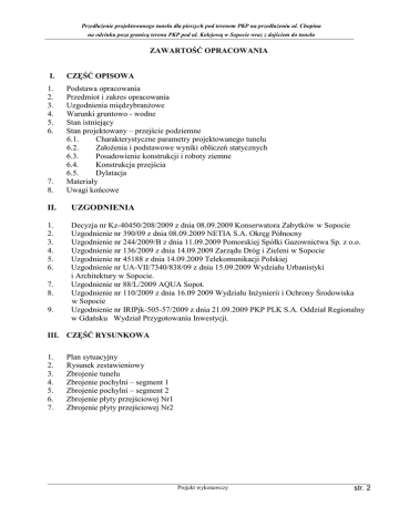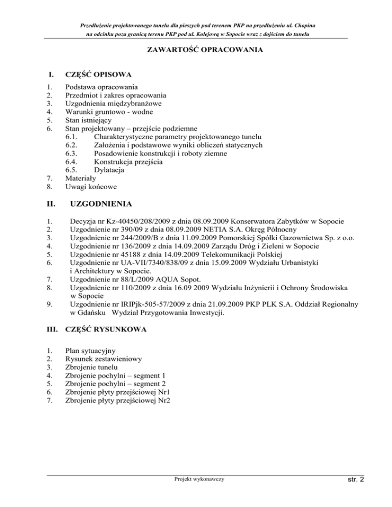 PrzedłuŜenie projektowanego tunelu dla pieszych pod terenem PKP na przedłuŜeniu ul. Chopina na odcinku poza granicą terenu PKP pod ul. Kolejową w Sopocie wraz z dojściem do tunelu ZAWARTOŚĆ OPRACOWANIA I. CZĘŚĆ OPISOWA 1. 2. 3. 4. 5. 6. Podstawa opracowania Przedmiot i zakres opracowania Uzgodnienia międzybranŜowe Warunki gruntowo - wodne Stan istniejący Stan projektowany – przejście podziemne 6.1. Charakterystyczne parametry projektowanego tunelu 6.2. ZałoŜenia i podstawowe wyniki obliczeń statycznych 6.3. Posadowienie konstrukcji i roboty ziemne 6.4. Konstrukcja przejścia 6.5. Dylatacja Materiały Uwagi końcowe 7. 8. II. UZGODNIENIA 1. 2. 3. 4. 5. 6. Decyzja nr Kz-40450/208/2009 z dnia 08.09.2009 Konserwatora Zabytków w Sopocie Uzgodnienie nr 390/09 z dnia 08.09.2009 NETIA S.A. Okręg Północny Uzgodnienie nr 244/2009/B z dnia 11.09.2009 Pomorskiej Spółki Gazownictwa Sp. z o.o. Uzgodnienie nr 136/2009 z dnia 14.09.2009 Zarządu Dróg i Zieleni w Sopocie Uzgodnienie nr 45188 z dnia 14.09.2009 Telekomunikacji Polskiej Uzgodnienie nr UA-VII/7340/838/09 z dnia 15.09.2009 Wydziału Urbanistyki i Architektury w Sopocie. Uzgodnienie nr 88/L/2009 AQUA Sopot. Uzgodnienie nr 110/2009 z dnia 16.09 2009 Wydziału InŜynierii i Ochrony Środowiska w Sopocie Uzgodnienie nr IRIPjk-505-57/2009 z dnia 21.09.2009 PKP PLK S.A. Oddział Regionalny w Gdańsku Wydział Przygotowania Inwestycji. 7. 8. 9. III. CZĘŚĆ RYSUNKOWA 1. 2. 3. 4. 5. 6. 7. Plan sytuacyjny Rysunek zestawieniowy Zbrojenie tunelu Zbrojenie pochylni – segment 1 Zbrojenie pochylni – segment 2 Zbrojenie płyty przejściowej Nr1 Zbrojenie płyty przejściowej Nr2 Projekt wykonawczy str. 2 PrzedłuŜenie projektowanego tunelu dla pieszych pod terenem PKP na przedłuŜeniu ul. Chopina na odcinku poza granicą terenu PKP pod ul. Kolejową w Sopocie wraz z dojściem do tunelu OPIS TECHNICZNY do projektu budowlanego „PrzedłuŜenie tunelu pod torami w km 11,580 na stacji Sopot” 1. PODSTAWA OPRACOWANIA. • Zlecenie Inwestora – Zakład Komunalny w Sopocie Zarząd Dróg i Zieleni. • Wizja lokalna w terenie i pomiary inwentaryzacyjne. • Mapa do celów projektowych. • PN-85/S-10030 Obiekty mostowe. ObciąŜenia. • PN-91/S-10042 Obiekty mostowe. Konstrukcje betonowe, Ŝelbetowe i spręŜone. Projektowanie. • PN-82/S-10052 Obiekty mostowe. Konstrukcje stalowe. Projektowanie. • PN-81/B-03020 Grunty budowlane. Posadowienie bezpośrednie budowli. ObciąŜenia statyczne i projektowanie. • Warunki techniczne, jakim powinny odpowiadać budowle kolejowe i ich usytuowanie. Dz.U. Nr 151/1998 poz. 987. • Warunki techniczne, jakim powinny odpowiadać drogowe obiekty inŜynierskie i ich usytuowanie. Dz.U. Nr 63/2000 poz. 735. • Warunki techniczne, jakim powinny odpowiadać drogi publiczne i ich usytuowanie. Dz.U. Nr 43/1999 poz. 430. • Id-2 (D2) Warunki techniczne dla kolejowych obiektów inŜynieryjnych. • Badania geotechniczne wykonane przez firmę UNIGEO w Gdańsku. 2. PRZEDMIOT I ZAKRES OPRACOWANIA. Przedmiotem opracowania jest przedłuŜenie projektowanego tunelu dla pieszych w km 11,580 pod terenem PKP na przedłuŜeniu ul. Chopina na odcinku poza granicą terenu PKP pod ul. Kolejową w Sopocie wraz z dojściami do tunelu. Roboty towarzyszące ujęto w projektach branŜowych. 3. UZGODNIENIA Uzgodnienia międzybranŜowe na planach sytuacyjnych. 4. WARUNKI GRUNTOWO - WODNE. PodłoŜe gruntowe jest nośne i nadaje się do bezpośredniego posadowienia tunelu. W poziomie posadowienia występują piaski drobne średniozagęszczone. 5. STAN ISTNIEJĄCY. W miejscu projektowanego dojścia do projektowanego na terenie kolejowym zamkniętym przedłuŜenia istniejącego przejścia dla pieszych w km 11,580 w ciągu ul. Chopina znajduje się działka miejska przeznaczona w planie miejscowym na ul. Kolejową dwujezdniową z chodnikami po obu stronach. Istniejące zagospodarowanie terenu – zieleń nie urządzona i kable nn. 6. STAN PROJEKTOWANY – PRZEJŚCIE PODZIEMNE. Zaprojektowano przedłuŜenie tunelu z ciągiem pieszo-rowerowym pod projektowaną ulicą Kolejową w Sopocie z wyjściem poprzez zadaszoną pochylnię i schody pomocnicze począwszy od granicy terenu kolejowego a skończywszy na terenie pomiędzy projektowaną ulicą kolejową a projektowanym parkingiem. Do granicy terenu kolejowego ma być doprowadzony tunel – projektowane na terenie kolejowym przedłuŜenie przejścia podziemnego w ciągu ulicy Chopina. Proponowana trasa tunelu i zadaszonej pochylni omija przeszkodę jaką jest słup wysokiego napięcia. Przyjęto zachowanie odległości 2,6m > 2,5m od osi najbliŜszego fundamentu do projektowanej ścianki szczelnej wciskanej. Włączenie pochylni do projektowanego układu drogowego z ciągiem pieszo-rowerowym i poprzez boczne schody. Parametry pochylni Projekt wykonawczy str. 3 PrzedłuŜenie projektowanego tunelu dla pieszych pod terenem PKP na przedłuŜeniu ul. Chopina na odcinku poza granicą terenu PKP pod ul. Kolejową w Sopocie wraz z dojściem do tunelu umoŜliwiają bezkolizyjne korzystanie z niej przez pieszych i osoby niepełnosprawne. 6.1. Charakterystyczne parametry projektowanego tunelu. • długość części zamkniętej przejścia pod ul. Kolejową (w osi konstrukcji): 15,93m, • długość pochylni (w osi konstrukcji): 30,09m, • światło poziome przejścia (w świetle ścian): 5,0 m, • światło pionowe przejścia (min): 2,40m, • spadki poprzeczne posadzki: dwustronny 1 %. • spadki podłuŜne posadzki: 2 ÷ 9 %. 6.2. ZałoŜenia i podstawowe wyniki obliczeń statycznych. ObciąŜenia uŜytkowe drogowe – klasa A wg PN-85/S-10030. Obliczenia statyczne konstrukcji przejścia przeprowadzono przy wykorzystaniu programu ROBOT i "Rm-win” do analizy statycznej konstrukcji prętowych. Na podstawie obliczeń zaprojektowano wykonanie konstrukcji przejścia z betonu klasy B30, B40 zbrojonego stalą klasy A-III i przyjęto następujące gabaryty przekrojów: grubość pł