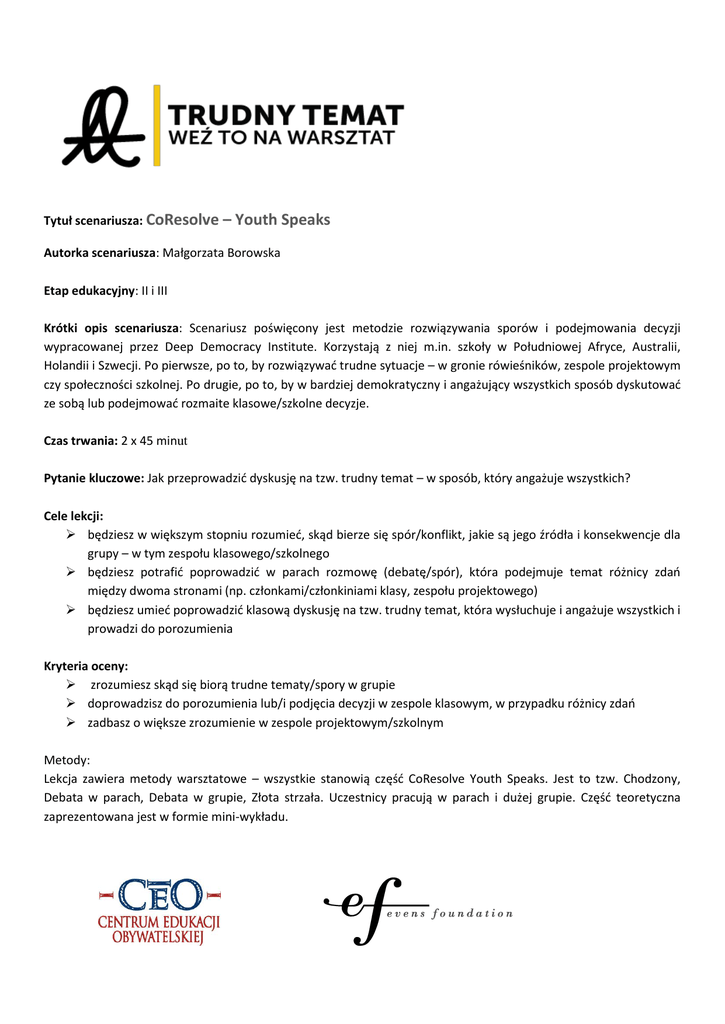 Tytuł scenariusza: CoResolve – Youth Speaks