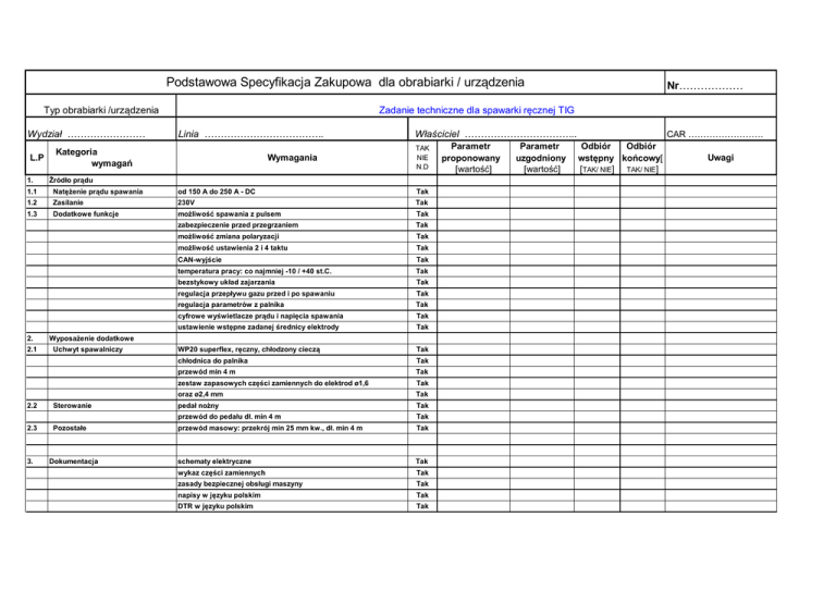 załącznik nr 1 - Zadanie techniczne dla spawarki ręcznej TIG