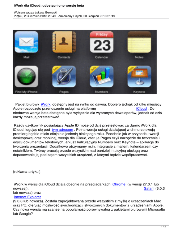 desktopowej oraz mobilnej, wersja dla iCloud, oferuje Pages czyli narzędzie do tworzenia i