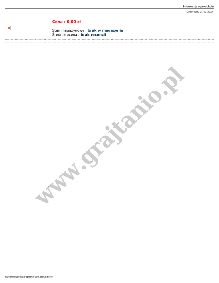 Informacje o produkcie Utworzono 07-03-2017 Cena : 0,00 zł w w w .g ra jt a ni o. pl Stan magazynowy : brak w magazynie Średnia ocena : brak recenzji Wygenerowano w programie www.oscGold.com
