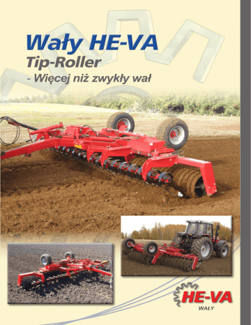 Wały HE-VA Tip-Roller - Więcej niż zwykły wał WAŁY Wszystko w jednym Nie tylko wałowanie, ale również wyrównanie i obróbka … wszystko w jednym urządzeniu! Wał HE-VA pozawala zwiększyć efektywność pracy, a co najważniejsze – zaoszczędzić czas i pien Na wale uprawowym HE-VA można zamontować belkę wyrównującą Spring-Board, co czyni wał wszechstronnym urządzeniem rolnic Możliwość wyboru spośród szerokiego asortymentu pierścieni firmy HE-VA pozwala dostosować wał do konkretnego rodzaju gleby. Wał uprawowy HE-VA – więcej niż zwykły wał. UNIKALNY SYSTEM SAT System SAT HE-VA został zaprojektowany tak, że ciężar ze środkowego segmentu jest zawsze całkowicie przenoszony na centralnie od używanego rodzaju i wielkości pierścieni, czy szerokości wału Tip-Roller. Dzięki systemowi SAT HE-VA część obciążenia jest prze mechanizmu składającego na segmenty boczne. Spring Active Transfer-System – Sprężynowe przenoszenie cię Wszystkie wały TipRoller 4,50 i 5,40 m oraz modele 6,30 m z pierścieniami o wielkości poniżej 600 mm wyposażone są w układ przenoszenia obciążenia, zbudowany ze składanego cylindra oraz sprężyny z teleskopem na przeciwległym końcu. Wały Tip-Roller 6,30 m z pierścieniami 600/620 mm, oraz wszystkie wały Tip-Roller 7,30 i 8,20 m są wyposażone w 2 składane cylindry z teleskopem na każdym końcu cylindrów i wytrzymałą sprężyną pomiędzy tymi dwoma cylindrami. ELASTYCZNOŚĆ – ROZŁOŻENIE CIĘŻARU Wały uprawowe z segmentami bocznymi zawieszonymi na tradycyjnych zawiasach, bez automatycznego systemu SAT firmy HE-VA, mają tendencję do wywierania największego nacisku na glebę przez segment środkowy. Ten segment przenosi ciężar dyszla, ramy kół, hydrauliki oraz ciężar własny, czyli o wiele więcej niż segmenty boczne. 1 W wałach o podstawowym projekcie ciężar nie jest przenoszony, co powoduje bardzo nierównomierne rozłożenie ciężaru, jak przedstawiono powyżej. 2 Nawet w przypadku innego przenoszenia ciężaru na wale z segmentami bocznymi zawieszonymi na tradycyjnych zawiasach ciężar rozkłada się nierównomiernie, jak na ilustracji powyżej. RUCHOME SEGMENTY WAŁU 3 System sprężynowy SAT firmy HE-VA i centralnie podwieszone segmenty boczne zapewniają przenoszenie ciężaru z segmentu środkowego na środkowe części segmentów bocznych, co umożliwia uzyskanie równomiernego zagęszczenia gleby na całej szerokości roboczej wału uprawowego. Wyjątkowy System SAT Rama główna, koła i dysz wspierają się na segmen patrz zdjęcie). Przy zastosowaniu system część ciężaru segmentu noszona jest na segment patrz zdjęcie). HE-VA TIP-ROLLER 3-segmentowy - 4,5 m do 10,2 m gleby. niądze. czym. . e zawieszone segmenty boczne, niezależnie enoszona z solidnej ramy głównej, kół i ężaru Wszystkie wały Tip-Roller 9,50 i 10,20 m wyposażone są w podwójną sprężynę, której zadaniem jest równomierne przenoszenie obciążenia, nawet w przypadku dużych szerokości roboczych. zel wału Tip-Roller ncie środkowym (O, mu SAT niezbędna środkowego przety boczne (--, Pierścienie osadzone są na 60-milimetrowych osiach ze stali nierdzewnej zapewniającej odpowiednią wytrzymałość i długą żywotność. Osie pracują na łożyskach kulkowych z podwójnym uszczelnieniem kołnierzowym zamontowanych przy pomocy 4 śrub zabezpieczonych z tyłu ramy o profilu U. Standardowo zamontowane są pojemniki na kamienie, a wszystkie funkcje sterowane są hydraulicznie z kabiny operatora. Łożysko podpierające 3-segmentowe zawieszenia Osie w segmentach bocznych wałów Tip-Roller 8,2, 9,5 i 10,2 m są zamontowane wraz z łożyskami kulkowymi po środku, jako dodatkowe podparcie w celu zapobiegania uginaniu. Można wybierać spośród 13 różnych typów pierścieni, łącząc je z jednym z dwóch narzędzi przednich, które można montować przed wałem w celu uzyskania dodatkowej obróbki ziemi. Segmenty boczne są zawieszone na solidnej osi obrotowej z tulejami powlekanymi w górnej i dolnej części teflonem w celu zapewnienia odpowiedniej wytrzymałości. WSZYSTKO W JEDNYM CYKLU ROBOCZYM Wały HE-VA w akcji – wyrównywanie, rozbijanie grudek, spulchnianie, rozbijanie brył, bronowanie jednocześnie z wałowaniem na pełnej szerokości. Dzięki różnym możliwościom konfiguracji wały HE-VA o szerokościach roboczych od 4,5 m do 10,2 m mogą spełniać wszystkie wymagania zapewniające zwiększenie wydajności niezależnie od areału czy warunków glebowych. Gdy segmenty boczne wału uprawowego są podwieszone centralnie, praca wału jest efektywna nawet na nierównym podłożu. Większe zagłębienia i wyboje ziemi często powodują, że zwykłe wały wiszą w powietrzu, przez co nie są efektywne. Korzystając z wałów HE-VA, można zawsze mieć pewność, że gleba będzie wałowana równomiernie na CAŁEJ szerokości wału. Wał dostosowuje się do powierzchni podłoża. Wybierz właściwy sposób obróbki gleby Oszczędności zaczynają się już na etapie obróbki gleby - … wyrównywanie, rozbijanie grudek, spulchnianie, rozbijanie brył, bronowanie - wszystko odbywa się jednocześnie. Obróbka? Przygotowanie łoża siewnego? A może zatrzymanie wilgoci? – Klucz do sukcesu to wielofunkcyjność. Belka Spring-Board jest obsługiwana hydraulicznie, dzięki czemu jej nacisk można na bieżąco regulować z ciągnika, a belkę można szybko i łatwo podnieść, gdy pole ma być wałowane. SPRING-BOARD Belka wyrównująca z zębami sprężynowymi SpringBoard kruszy bryły i zapewnia doskonały efekt wyrównania gleby. Kąt/głębokość robocza belki są regulowane hydraulicznie z kabiny, co umożliwia dostosowanie do bieżących warunków podłoża. Wymiary sprężyn wynoszą 10 mm x 80 mm, a dzięki hartowanym zakończeniom o szerokości 150 mm zapewniają szerokie pokrycie powierzchni. SPRING-BOARD EASY CHANGE Teraz dobrze znana belka Spring-Board została d