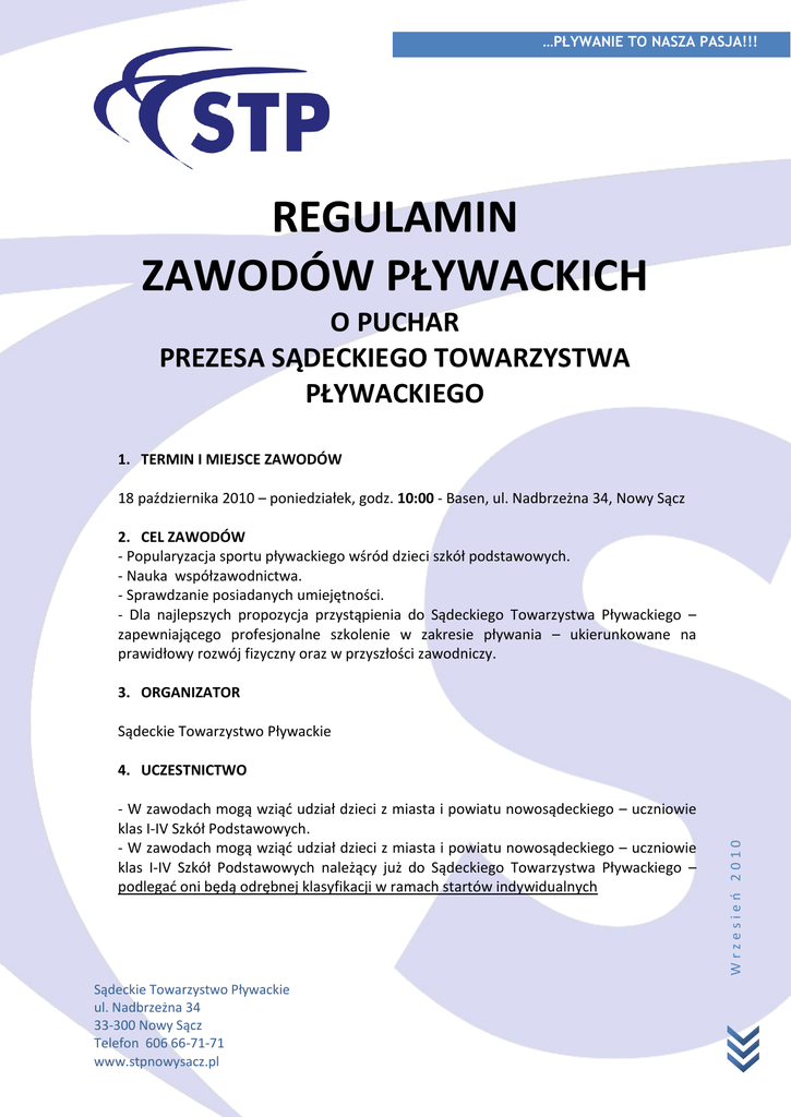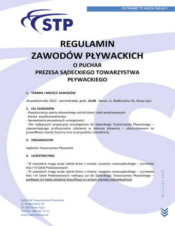 REGULAMIN - Sądeckie Towarzystwo Pływackie