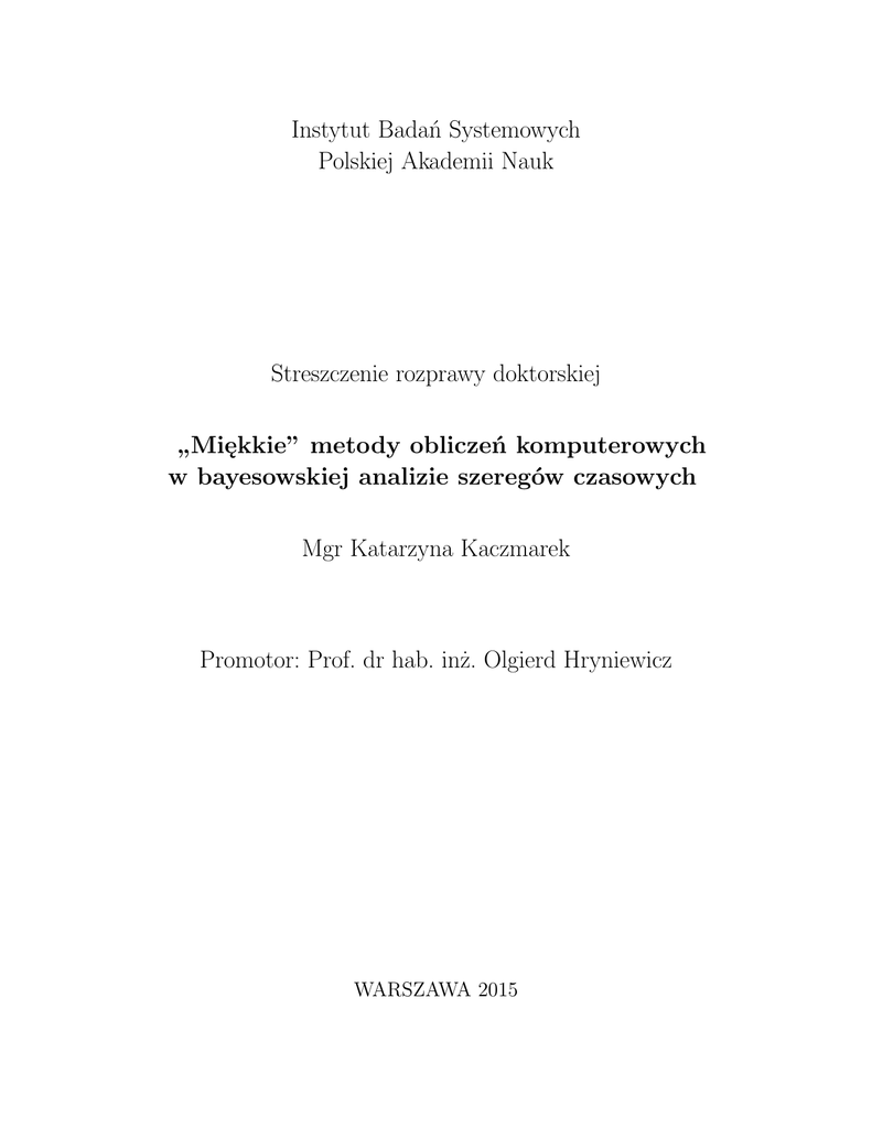 Promotor: Prof. dr hab. inż. Olgierd Hryniewicz