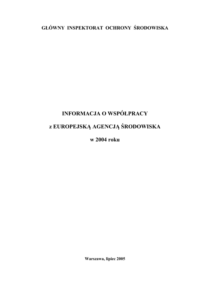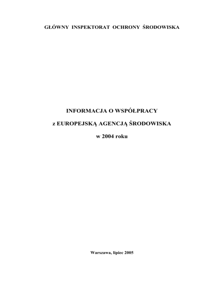 Informacja o współpracy z Europejską Agencją Środowiska w 2004