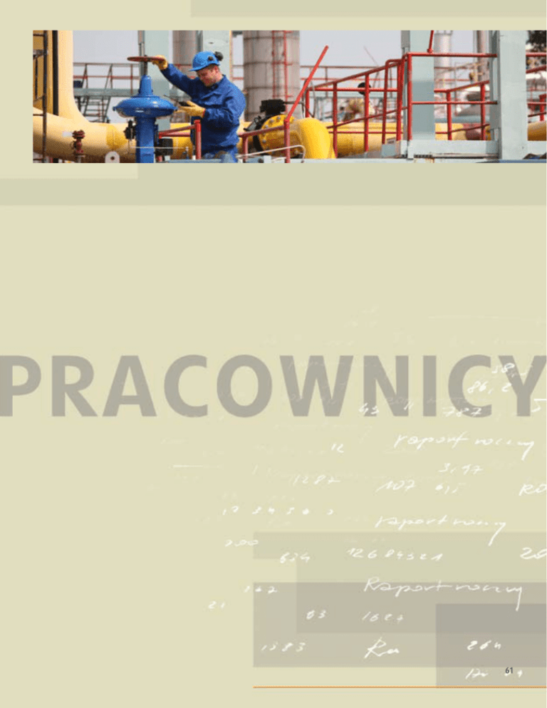 61 Ludzie to największy kapitał Grupy Kapitałowej PGNiG, bez nich nie byłyby możliwe międzynarodowe sukcesy przedsiębiorstwa oraz realizowane na szeroką skalę inwestycje. To dzięki tysiącom pracowników PGNiG SA świadczy usługi na najwyższym poziomie milionom swoich klientów. W Grupie Kapitałowej PGNiG od 1 stycznia 2000 roku do 31 grudnia 2008 roku realizowany był Program restrukturyzacji zatrudnienia oraz działań osłonowych dla pracowników Oddziałów oraz spółek zależnych PGNiG SA. Różnymi formami restrukturyzacji zatrudnienia objęto 21 551 osób. Działania podejmowane w ramach programu spowodowały zmniejszenie stanu zatrudnienia w PGNiG SA i w objętych nim spółkach zależnych o 14 689 osób (uwzględniając transfer 2181 osób związany z wydzieleniem OGP GAZ-SySTEM sp. z o.o. poza Grupę Kapitałową PGNiG). 11 grudnia 2008 roku Nadzwyczajne Walne Zgromadzenie PGNiG SA przyjęło Program racjonalizacji zatrudnienia oraz osłon finansowych dla pracowników Grupy Kapitałowej PGNiG na lata 2009–2011 (III etap). Program wszedł w życie w styczniu 2009 roku. W odróżnieniu od poprzednich programów restrukturyzacji zatrudnienia może on być wdrażany w sytuacjach szczególnych. Przewidziano do jego realizacji jednolitą dla całej Grupy Kapitałowej procedurę. Decyzje o wdrożeniu programu mogą być podejmowane wyłącznie wtedy, gdy jest to uzasadnione skalą projektowanych działań restrukturyzacyjnych, związanych ze zmniejszeniem zatrudnienia i/lub likwidacją stanowisk. Rozwój Inwestycje w zasoby ludzkie sprzyjają realizacji planów przedsiębiorstwa, pozwalają także urzeczywistniać indywidualne aspiracje poszczególnych pracowników. Ze względu na szerokie spektrum działalności spółek zależnych, PGNiG SA przyznało podmiotom Grupy Kapitałowej dużą swobodę w ustalaniu zakresu i rodzajów szkoleń pracowniczych. Kluczową rolę w budowaniu więzi między spółką a pracownikami odgrywa system zarządzania szkoleniami. Osoby zatrudnione w Grupie Kapitałowej PGNiG mają możliwość podwyższania swoich kwalifikacji zawodowych, korzystając z oferty studiów podyplomowych, uczestnicząc w branżowych konferencjach krajowych, seminariach lub sympozjach, odbywając praktyki zawodowe, a także korzystając z nowej formy samokształcenia, jaką jest e-learning. Ponadto pracownicy uczestniczą w kursach językowych, mają także szansę odbycia stażu w przedstawicielstwach PGNiG SA w Moskwie lub w Brukseli, gdzie mogą poznać specyfikę codziennej pracy tych jednostek, a także doskonalić swoje umiejętności językowe. W zależności od zakresu obowiązków, pracownicy mogą brać udział w szkoleniach dotyczących szeroko rozumianego nowoczesnego funkcjonowania przedsiębiorstwa. Spośród wielu należy wymienić: zarządzanie projektami, analiza otoczenia prawnego, zarządzanie ryzykiem w biznesie, techniki obsługi klienta oraz szkolenia związane z komunikacją wewnętrzną i współpracą w grupie. Szkolenia były współfinansowane ze środków unij62 nych, w tym z Europejskiego Funduszu Społecznego. Rozbudowana oferta szkoleniowa daje pracownikom szansę na rozwój oraz podnoszenie kwalifikacji zawodowych, firmie przynosi zaś wymierne korzyści w postaci zwiększonej efektywności pracy. Rozwój kadry przekłada się na wzrost wartości Grupy Kapitałowej PGNiG, pozytywnie ocenianej przede wszystkim przez inwestorów oraz klientów, a także przyszłych pracowników. Obecnie Zarząd PGNiG SA pracuje nad wprowadzeniem programu MBO. Największy pracodawca Grupa Kapitałowa PGNiG z najwyższą starannością wypełnia wszystkie powinności wobec pracowników, a także członków ich rodzin. Głównie dotyczą one działalności socjalno-bytowej i obejmują: • organizację oraz dofinansowanie wypoczynku urlopowego oraz wakacyjnego dla dzieci i młodzieży; • pomoc finansową i rzeczową dla rodzin znajdujących się w najtrudniejszej sytuacji materialnej; • zwrotną pomoc finansową na cele mieszkaniowe; • organizację oraz dofinansowanie różnych form aktywnego wypoczynku (sport i rekreacja); • rehabilitację zdrowotną w formie zorganizowanych turnusów profilaktycznych w branżowych ośrodkach wypoczynkowosanatoryjnych. Staże i praktyki PGNiG SA jest organizatorem programu praktyk studenckich, z którego można skorzystać, biorąc udział w corocznym konkursie „Grasz o staż” – najbardziej popularnym i prestiżowym programie praktyk, skierowanym do polskich studentów i absolwentów. Konkurs jest organizowany od 1996 roku przez PricewaterhouseCoopers i „Gazetę Wyborczą”. Spółka jest fundatorem płatnych praktyk w okresie wakacyjnym. Ponadto PGNiG SA we wszystkich swoich oddziałach w Polsce umożliwia bezpłatne praktyki studentom Politechniki Warszawskiej Wydziału Inżynierii Gazownictwa, a także okresowe praktyki dla studentów wyższych uczelni z całej Polski. Pozyskiwanie najlepszych Zgodnie z przyjętymi zasadami oraz stosownie do ustaleń zawartych w programie restrukturyzacji zatrudnienia w Grupie Kapitałowej PGNiG, w centrali spółki obowiązuje przede wszystkim rekrutacja wewnętrzna. Pozwala to w pełni wykorzystać potencjał zatrudnionych w PGNiG SA pracowników, jest środkiem motywującym do bardziej efektywnej pracy i rozwijania własnych talentów. W przypadku konieczności pozyskania pracownika o rzadkich kompetencjach przeprowadzana jest rekrutacja zewnętrzna. W procesie rekrutacji określany jest poziom kompetencji kandydatów na podstawie zdefiniowanego kompetencyjnego profilu stanowiskowego, który stanowi kombinację wiedzy, umiejętności, postaw i motywacji wymaganych na danym stanowisku. ZATRUDNIENIE W GRUPIE KAPITAŁOWEJ PGNIG W PODZIALE NA SEGMENTY W LATACH 2006–2008 2006 2008 2007 1.99% 2.72% 6.36% 2 .6 6 % 6.5 0 % 6.36% 33.47% 33.29% 4 3 .7 2 % 44.64% 56.06% 1.57% Poszukiwanie i Wydobycie 3 4 .11 % 13.53% Pozostała działalność 1 3 .0 0 % Centrala PGNIG SA