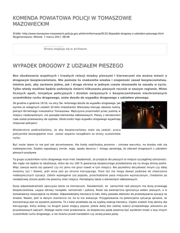 komenda powiatowa policji w tomaszowie mazowieckim wypadek