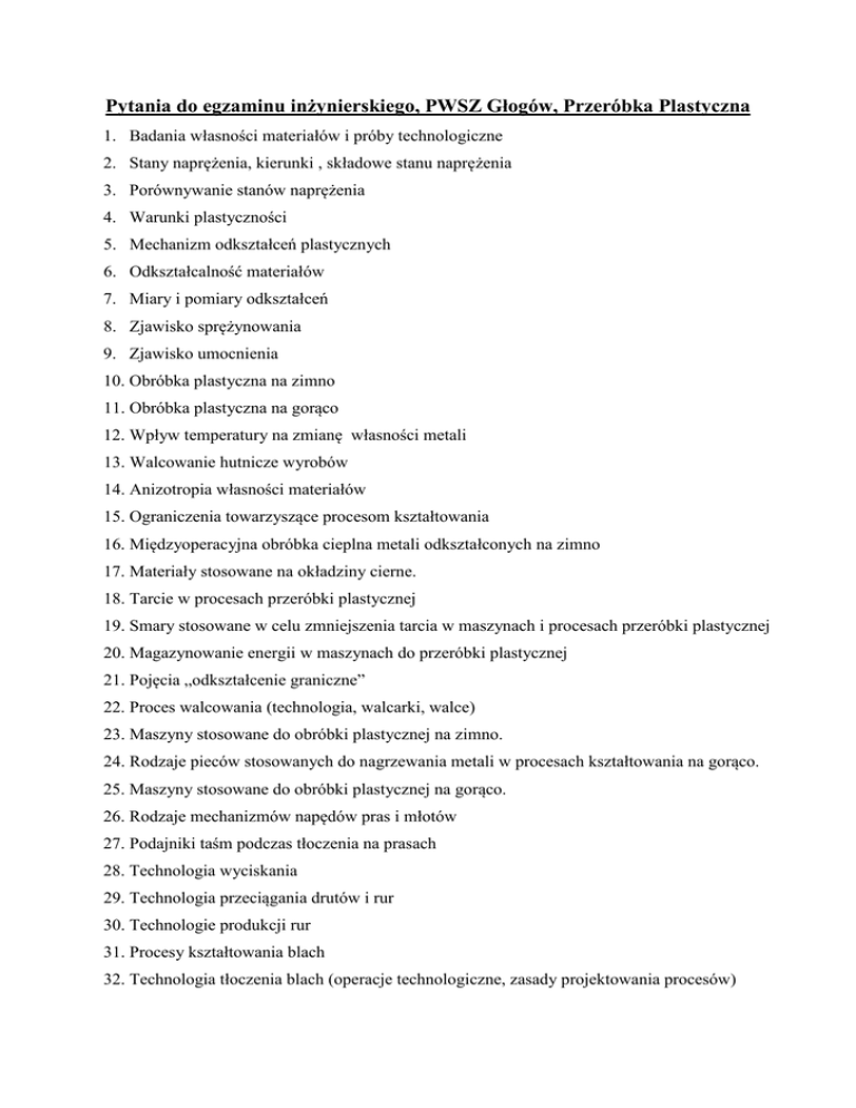 Pytania do egzaminu inżynierskiego, PWSZ Głogów, Przeróbka