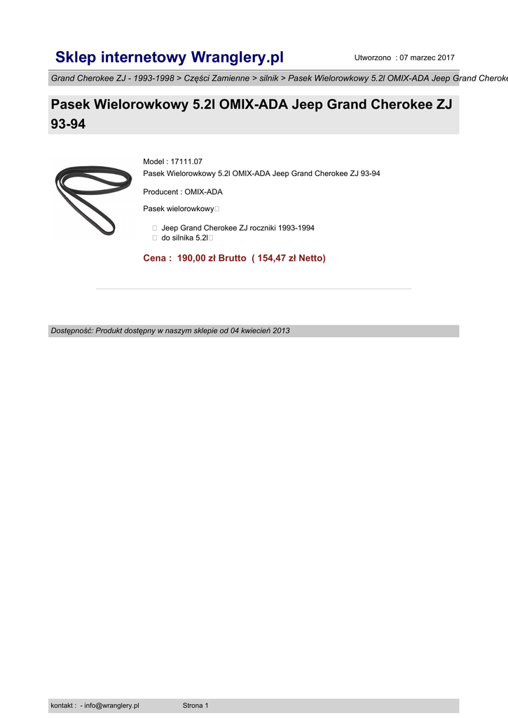 Sklep internetowy Wranglery.pl Utworzono : 07 marzec 2017 Grand Cherokee ZJ - 1993-1998 > Części Zamienne > silnik > Pasek Wielorowkowy 5.2l OMIX-ADA Jeep Grand Cheroke Pasek Wielorowkowy 5.2l OMIX-ADA Jeep Grand Cherokee ZJ 93-94 Model : 17111.07 Pasek Wielorowkowy 5.2l OMIX-ADA Jeep Grand Cherokee ZJ 93-94 Producent : OMIX-ADA Pasek wielorowkowy� � Jeep Grand Cherokee ZJ roczniki 1993-1994 � do silnika 5.2l� Cena : 190,00 zł Brutto ( 154,47 zł Netto) Dostępność: Produkt dostępny w naszym sklepie od 04 kwiecień 2013 kontakt : - [email protected] Strona 1