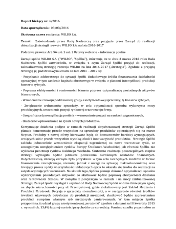 zaktualizowaną strategię rozwoju WILBO na lata 2016-2017 („Strategia”). Zgodnie z przyjętą