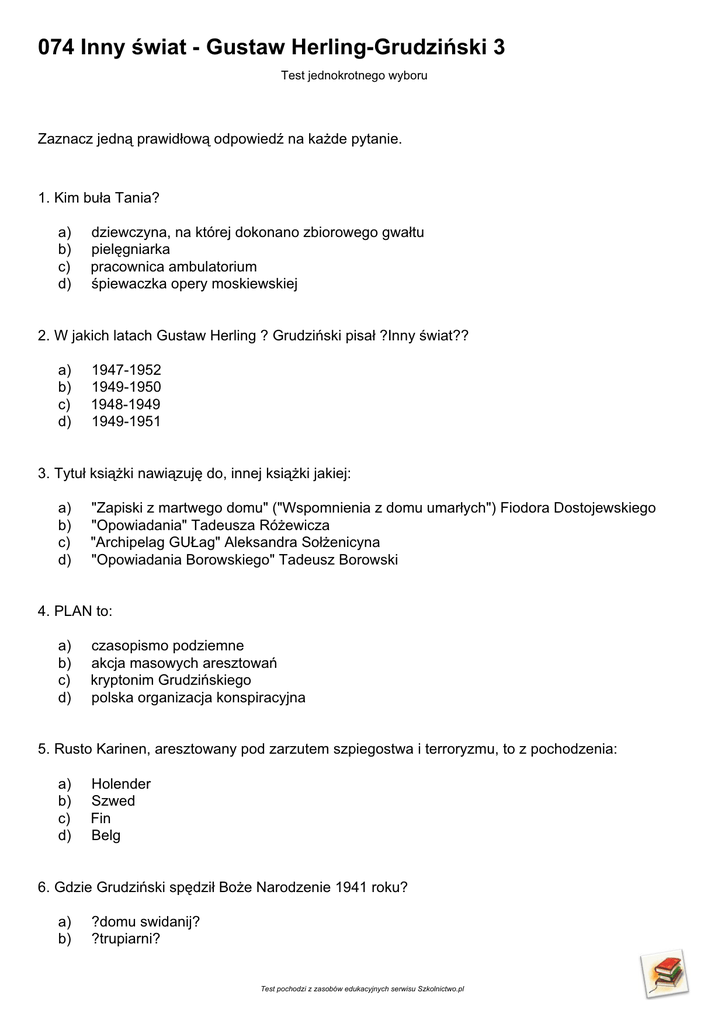 Test pochodzi z zasobów edukacyjnych serwisu Szkolnictwo.pl
