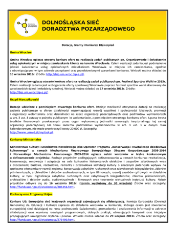 Dotacje, Granty i Konkursy 18/sierpień Gmina Wrocław Gmina