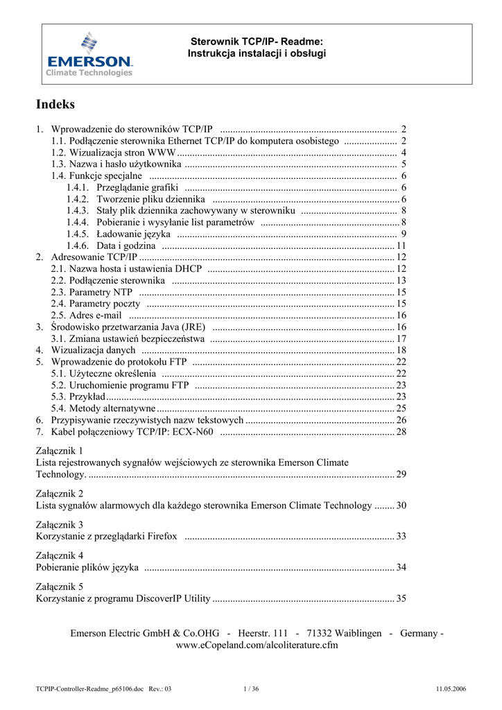 Odpowiednie pliki można pobrać ze strony zasobów TCP/IP witryny www.eCopeland.com.