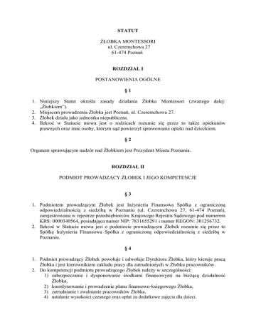 STATUT ŻŁOBKA MONTESSORI ul. Czeremchowa 27 61