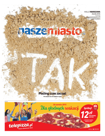 HALLOWARSZAWA 25.06.2015 Czwartek www.naszemiasto.pl nr 47 facebook.com/naszemiasto.pl gazeta bezpłatna Plażing czas zacząć W mieście też nie będzie nudy! REKLAMA 035334490 2 #hallo warszawa 02 CZWARTEK, 25 CZERWCA 2015 NASZEMIASTO www.naszemiasto.pl BARDZO DUŻO MALUJĘ. NIE MÓWIĘ, ŻE JESTEM PICASSEM CZY FRIDĄ KAHLO, ALE TO MNIE BARDZO RELAKSUJE PSYCHICZNIE KORA DLA AGENCJI NEWSERIA #hallo warszawa #byliśmy tam Krzysztof Ibisz, prezenter #na salonach Pierwsza edycja za nami FOT. GRZEGORZ GALASINSKI Nie nadaję się na emigranta. Kocham Polskę i nie potrafiłbym żyć gdzie indziej. #seriale #podróże Śladami „Gry o tron” #w sieci JESTEŚ DOBRY Z BIOLOGII? ROZWIĄŻ QUIZ I SPRAWDŹ, JAK DUŻO PAMIĘTASZ ZE SZKOŁY! ZABAWĘ ZNAJDZIESZ NA NASZEMIASTO.PL REKLAMA FOT. PHOTO BY ARTHUR MOLA/INVISION/AP JEST CÓRKĄ PALESTYŃCZYKA I HOLENDERSKIEJ MODELKI. NA SWOIM KONCIE MA JUŻ SESJE W „VOGUE” I „ELLE” Więcej zdjęć ze Slow Weekendu w SOHO Factory na naszemiasto.pl S #mój głos #W poszukiwaniu utraconego festiwalu PIOTR KUBICA dziennikarz naszemiasto.pl @KubicaPiotr FOT. MATERIAŁY WŁASNE 20 LAT I WIELKA KARIERA. GIGI HADID GWIAZDĄ MODY odcinekpiątegosezonu„Gry otron”.Jeślitęskniciejużzabohateramiprodukcji,możeciesięwybraćnawycieczkęwmiejsca, gdziekręconoserial.Zacznijmy odIrlandiiPółnocnej.Tojedno zważniejszychmiejsc,wktórym powstawałyzdjęciadoprodukcji. WIrlandiiPółnocnejorganizowanesąspecjalnewycieczkidlafanówprodukcji.Kolejnymmiejscem,gdziekręconounikatowe ujęcia,jestChorwacja.Wprodukcjizagrałym.in.bajecznypark Krka,jedenznajwiększychwkraju,orazDubrovnik,któryw„Grze otron”zamieniasięwKrólewską Przystań.Faniserialumogą odwiedzićwtewakacjetakżesłonecznąHiszpanię.Pałac AlhambrazGranadywpiątym sezoniepojawiłsięwrolikrólestwaDorne.Wostatniejczęści mogliśmyteżoglądaćmalowniczemiasteczkozAndaluzji–Osunę.Tuzostałaumiejscowiona jednazescenbatalistycznych. Produkcja„Gryotron”zawędrowałateżdoMaroka.Serialowa krainazamuremtoterenyIslandii.Zdjęciakręconom.in.nalodowcuVatnajökull.ZdjęciakręconoteżwrejoniejezioraMyvatn. 005377824 tanokreślanydepresją pofestiwalowątoprzypadłość,naktórącierpicorokubardzowielu festiwalowiczów.Objawiasięgwałtownymspadkiem nastrojuwynikającymzpowrotu zfestiwaludoszarejcodzienności.Wspomnieniekilkuspędzonychbeztroskodnijestjeszcze bardzoświeże.Sprawia,żekoniecznośćzmaganiasięzuciążliwymiludźmi,przytłaczającymi obowiązkamiiproblemamijest jeszczetrudniejszaniżzwykle. Aprzecieżjeszczeprzedchwilą byłotakcudownie.Nascenietwój ulubionyzespół.Jesteśwśródludzi,którychznaszilubisz.Alu- FOT. EWELINA WOJCIK WYCIECZKA– Zanamifinałowy dzie,którychnieznasz,itaksłuchajątejsamejmuzykicoty,są fajnieubraniiprzyjaźnienastawieni.Sytuacjaabsolutnieniemożliwadoodtworzenianaco dzień.Najtrudniejszadecyzja,jakąmusiszpodjąćpodczastych kilkudni,dotyczytego,czypiwo mabyćzsokiem,czybez.Niewystępująpodziałyspołeczne.Jesteś wraju.Kiedyjednakumilkną oklaskipoostatnimkoncercie,zostajeszzniegowygnany.Jakżyć? Napoczątekmożnaspróbować kilkusztuczek,żebyoszukaćpogrążonywbóluumysł.Napewno wartoniezdejmowaćfestiwalowejopaskiznadgarstka.Ubrania trzymaćwwalizce,nieprasować, MATERIAŁ INFORMACYJNY FESTIWAL – W Elblągu zakończył się I Festiwal Polskich Seriali Telewizyjnych. „Ranczo” zdobyło tytuł produkcji wszech czasów i nagrodę publiczności. Wyróżnienie przyznało też jury Festiwalu Polskich Seriali Telewizyjnych – otrzymała je Monika Kwiatkowska za rolę w serialu „Głęboka woda”. W czasie festiwalu rozdane zostały także wyjątkowe nagrody – Złote Światowidy. Trafiły do rąk Zofii Czerwińskiej za rolę w serialu „Na dobre i na złe” oraz do Cezarego Żaka, który gra księdza i wójta w produkcji „Ranczo”. Srebrny Światowid przypadł Janowi Wieczorkowskiemu za rolę Władka Konarskiego w „Czasie honoru – Powstanie”. Drugiego Srebrnego Światowida dostała Kinga Preis, która gra Natalię w „Ojcu Mateuszu”. chodzićwkaloszach.Odciąćciepłąwodęwłazience,spaćnakarimacie,żywićsięwfoodtruckach ikorzystaćztoaletywcentrum handlowym.Następnykrokto podjęciedziałańdługofalowych. Możeszspróbowaćwmówićsobie,żecałeżycieniemożewyglądaćjakmuzycznyfestiwal.Że dolcevitateżkiedyśpowszednieje,żepotrzebnajestrównowaga. Niestety,dobrzewiesz,żetonieprawda.Kolejneposunięcietodokładneśledzenieofertykulturalnejmiasta.Możesięokazać,że momentamijestnatylebogata, żeniestarczyciczasunaogarnięciewszystkiego,nacomaszochotę.ItegosobieiPaństwużyczę! 015389852 Chłopcy z Legnicy i dziewczęta z Łodzi wygrywają wielki finał Coca-Cola Cup Zakończyła się 17. edycja Coca-Cola Cup. Wielki finał krajowy zakończył się zwycięstwem chłopców z Legnicy oraz dziewcząt z Łodzi. Najlepsze drużyny turnieju w nagrodę pojadą na obóz treningowy do Madrytu. Emocje były ogromne aż do ostatnich sekund finału krajowego Coca-Cola Cup, tym bardziej, że w ostatnim meczu tegorocznego turnieju, o zwycięstwo w klasyfikacji chłopców, walka była niezwykle wyrównana. Ostatecznie pierwsze miejsce przypadło chłopcom z Gimnazjum nr 3 z Legnicy. W finale dziewcząt doszło do solidnej strzelaniny. Już po kilkudziesięciu sekundach meczu na tablicy wyników widniał wynik 2:1 dla Szkoły Mistrzostwa Sportowego z Łodzi. Dziewczęta z tej szkoły obroniły pierwsze miejsce. Zwycięzcy Coca-Cola Cup otrzymają wyjątkową nagrodę: wyjazd na czterodniowy obóz treningowy do Madrytu, gdzie pod okiem profesjonalnych trenerów będą szlifować swoje piłkarskie umiejętności na obiektach dziesięciokrotnego zdobywcy Pucharu Europy i Ligi Mistrzów. Wielki finał krajowy miał wyjątkową oprawędecydujące mecze były rozgrywane na boisku z naturalną murawą, specjalnie na tę okazję postawionym na Targu Węglowym w Gdańsku, a przylegająca do niego trybuna wypełniła się kibicami. Wy