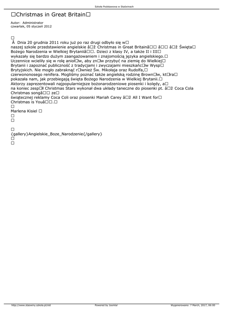 Christmas in Great Britain - Szkoła Podstawowa w Staświnach