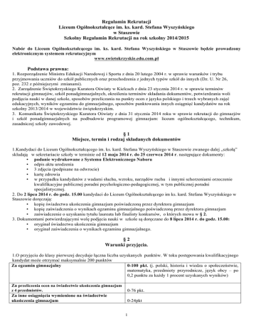 Regulamin Rekrutacji Liceum Ogólnokształcące im. ks. kard