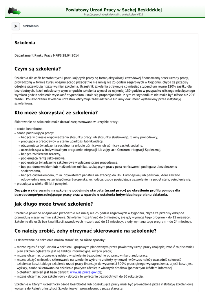 Czym są szkolenia? - PUP Sucha Beskidzka