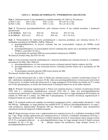 LISTA 4 – ROZKŁAD NORMALNY. TWIERDZENIA GRANICZNE