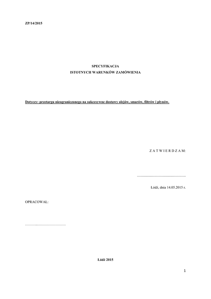 ZP/14/2015 SPECYFIKACJA ISTOTNYCH