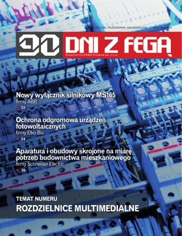 NR 4 (36), PAŹDZIERNIK–GRUDZIEŃ 2015 Nowy wyłącznik silnikowy MS165 firmy ABB V 22 Ochrona odgromowa urządzeń fotowoltaicznych firmy Elko-Bis V 24 Aparatura i obudowy skrojone na miarę potrzeb budownictwa mieszkaniowego firmy Schneider Electric V 26 TEMAT NUMERU ROZDZIELNICE MULTIMEDIALNE ISSN 1898-6978 SIEDZIBA ul. Wagonowa 5-7 53-609 Wrocław tel. 71 37 60 900 fax 71 37 60 931 [email protected] ODDZIAŁY ODDZIAŁ GDAŃSK ul. Uczniowska 33 80-530 Gdańsk tel. 58 782 79 10, fax 58 782 79 13 [email protected] ODDZIAŁ KATOWICE al. Roździeńskiego 190B 40-203 Katowice tel. 32 35 83 740, fax 32 35 83 741 [email protected] ODDZIAŁ KRAKÓW ul. Centralna 51 31-586 Kraków tel. 12 41 09 440, fax 12 41 09 441 [email protected] ODDZIAŁ ŁÓDŹ ul. Niciarniana 33/39 92-320 Łódź tel. 42 64 80 543, fax 42 64 80 541 [email protected] ODDZIAŁ POZNAŃ ul. Lutycka 11 60-415 Poznań tel. 61 84 98 800, fax 61 84 98 801 [email protected] ODDZIAŁ STALOWA WOLA ul. Handlowa 6 37-450 Stalowa Wola tel. 15 84 34 820, fax 15 84 34 824 [email protected] Magdalena Tomaś, redaktor naczelna Szanowni Państwo Serdecznie zapraszam do lektury, ostatniego w tym roku wydania, naszej gazety branżowej „90 dni z FEGĄ”. W tym numerze skoncentrowaliśmy się na pogłębieniu Państwa wiedzy z zakresu rozdzielnic multimedialnych, a także zaprezentowaniu ciekawych rozwiązań naszych dostawców, które oczywiście dostępne są w naszej ofercie asortymentowej. ODDZIAŁ WARSZAWA ul. Instalatorów 9 02-237 Warszawa tel. 22 73 92 400, fax 22 73 92 410 [email protected] Marek Paś zajął się tym razem dwoma zagadnieniami, w pierwszym artykule przedstawia rozwiązania gazo- i wodoszczelne przepustów do budynków USTEC i Raychem oraz system biernej ochrony przeciwpożarowej Rawlplug, a drugi artykuł dotyczy TUB LEDOWYCH. REDAKCJA Krzysztof Marciniak objaśnia działanie układu SZR, natomiast Jacek Wrzaskowski napisał kilka słów na temat głowic kablowych. REDAKTOR NACZELNA Magdalena Tomaś tel. 71 37 60 914 REDAKTOR Artur Ślusarczyk DTP Lorem Ipsum Studio [email protected] Nr 4 (36), październik–grudzień 2015 r. Nakład 1000 egz. Uwagi i sugestie proszę kierować na adres [email protected] Redakcja nie odpowiada za treść reklam i ogłoszeń oraz zastrzega sobie prawo do skracania i adiustacji tekstów, zmiany tytułów, a także formy graficznej nadsyłanych materiałów. Wydawca ma prawo odmówić publikacji materiałów, których treść lub forma jest sprzecza z charakterem pisma. Reprodukcja, przedruk magazynu może odbywać się wyłącznie po uzyskaniu zgody wydawcy. Wiktor Jędrzejak, dbając o nasze bezpieczeństwo, poświęcił swoją uwagę na instalacjach odgromowych i przeciwprzepięciowych w budynkach mieszkalnych. FEGA Poland wprowadziła do swojej oferty szeroką gamę produktów z fotowoltaiki, tym samym Michał Zabawa w każdym numerze będzie Państwu prezentował urządzenia i ciekawe rozwiązania z tego zakresu – tym razem skoncentrował się na inwerterach. W zakresie asortymentu rozpoczęliśmy współpracę z nowymi dostawcami, których mamy przyjemność zaprezentować na łamach czasopisma, są to firmy: Assmann, Kubiak, Pawbol oraz Selfa G.E. Życzę pożytecznej lektury i zapraszam na chwilę relaksu przy krzyżówce VIKO by Panasonic. SPIS TREŚCI TEMAT NUMERU 3 Rozdzielnice multimedialne 6 Systemy przejść kablowych 8 Głowice kablowe 10 Tuby ledowe Alternatywa ekonomicznej modernizacji oświetlenia w technologii LED 12 Instalacja odgromowa i przeciwprzepięciowa w budynkach mieszkalnych 14 Inwertery w instalacjach fotowoltaicznych 16 Samoczynne załączanie rezerwy PORADY EKSPERTÓW AKTUALNOŚCI RYNKOWE 17 Danfoss łączy się z Vacon Assmann: 6-cio złączowy kanał klasy EA z certyfikatem 18 Moduły fotowoltaiczne Selfa Nowe organizery marki PROTEC.class® 22 NOWOŚCI PRODUKTY Nowy wyłącznik silnikowy MS165 firmy ABB 24 Ochrona odgromowa urządzeń fotowoltaicznych firmy Elko-Bis 26 Aparatura i obudowy skrojone na miarę potrzeb budownictwa mieszkaniowego firmy Schneider Electric 28 30 Mierniki PROTEC.class® Tarcze tnące i szlifierskie firmy PROTEC.class® 32 PAWBOL – nowy dostawca w hurtowniach FEGA Poland TEMAT NUMERU ROZDZIELNICE MULTIMEDIALNE Internet, telefon, telewizja to już standard każdego nowo oddawanego mieszkania, praktycznie każdy z nas ma dostęp do tych mediów w swoim domu. Abyśmy mogli korzystać z internetu, telewizji telefonu stacjonarnego musimy mieć doprowadzony sygnał do mieszkania. Najczęściej odbywa się to drogą kablową, często też sygnały odbierane drogą radiową są wprowadzane do budynku poprzez kabel. Korzystając z różnych operatorów telewizji kablowej, internetu, czy innych mediów do naszego mieszkania było wprowadzanych wiele przewodów. Z roku na rok liczba wprowadzanych przewodów z różnymi mediami rosła, wystarczyło tylko zmienić operatora telefonii naziemnej, a za chwilę pukał do naszych drzwi monter, który montował następne gniazdo telefoniczne. Wystarczyło jeszcze kilka razy zmienić dostawcę internetu, aby stracić orientację w tej całej domowej plątaninie. Taka sytuacja była spowodowana tym, że prawo budowlane 3 nie określało szczegółowo montażu instalacji medialnych, aż do momentu ogłoszenia Rozporządzenia Ministra Transportu, Budownictwa i Gospodarki Morskiej z 2012 r (Dz. U. z 2012 r. Poz. 1289), które ściśle określa warunki prowadzenia instalacji telekomunikacyjnych w budownictwie wielorodzinnym oraz w budynkach użyteczności publicznej. W rozporządzeniu Ministra jest także podane miejsce gdzie należy montować telekomunikacyjne skrzynki mieszkaniowe oraz informacje co te skrzynki mają zawierać, ile ma być doprowadzonych przewodów i jakiego typu. Instalacje telekomunikacyjne mają być bezpieczne dla mieszkańców, mają też zwierać elementy, które będą chroniły instalację oraz urządzenia w tablicach multimedialnych przed przepięciami. Rozporządz